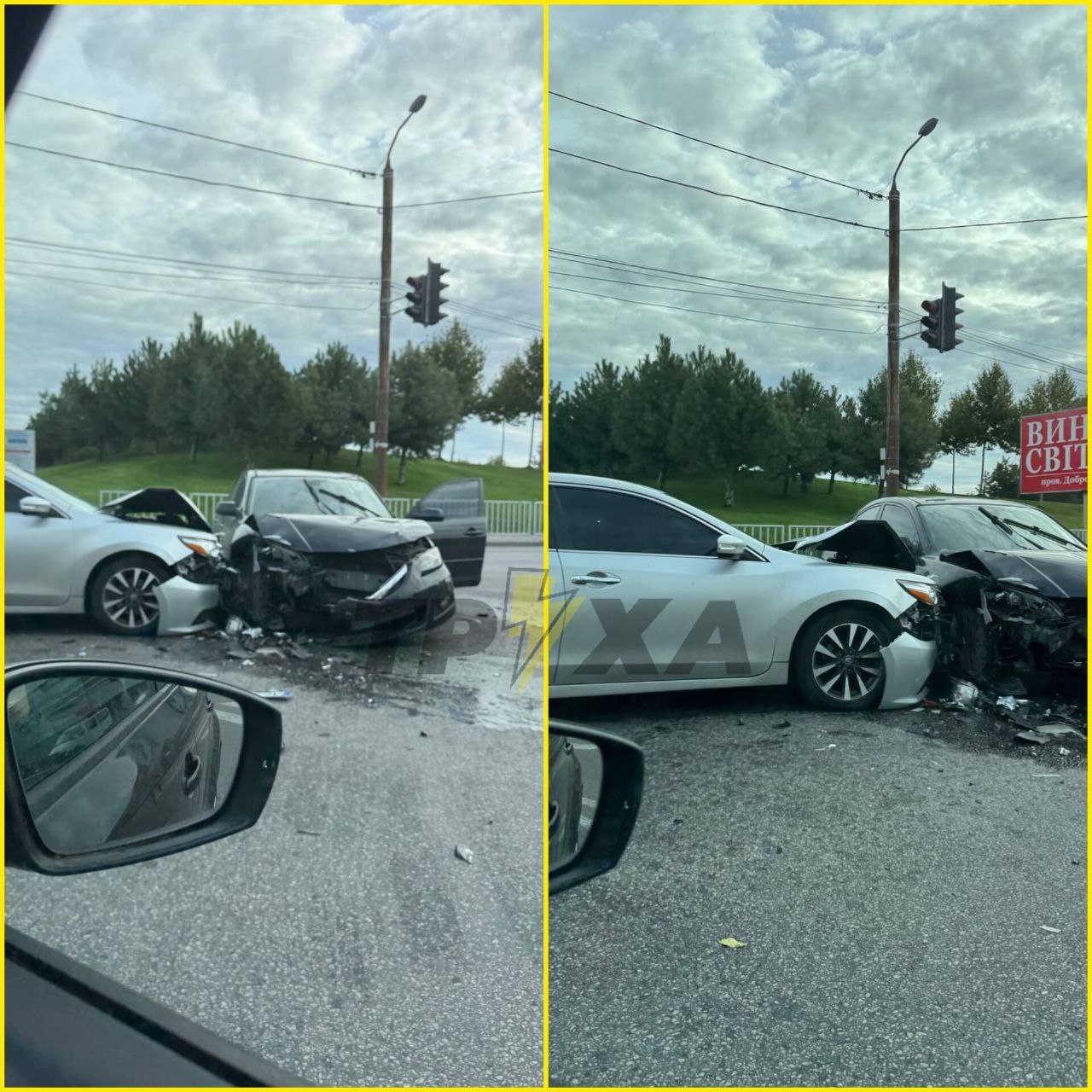 Авария произошла недалеко от яхт-клуба "Сич". Две легковушки не поделили дорогу и столкнулись.