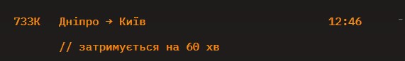На табло вокзала Киев-Пассажирский нет сообщения о задержке поезда №733К на 60 минут.