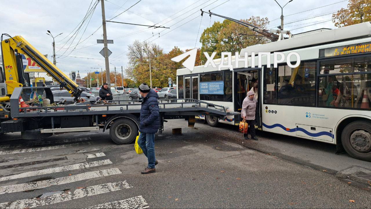 Во вторник, 21 октября, в Днепре на Сичеславской Набережной произошло дорожно-транспортное происшествие с участием троллейбуса №2 и не разминувшиеся на проезжей части эвакуатура. Об этом сообщает "Відомо" со ссылкой на городские Telegram-каналы.