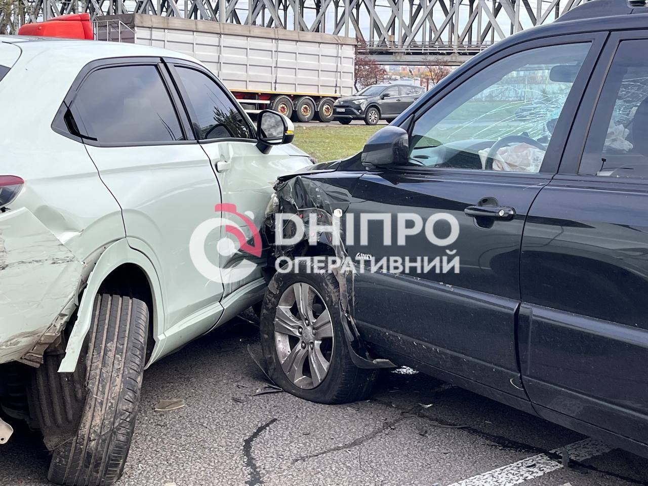 В среду, 29 октября, в Днепре на Набережной Заводской произошла тройная авария. В районе железнодорожного моста столкнулись три автомобиля. Об этом сообщает "Відомо" со ссылкой на Telegram-каналы "Днепр оперативный" и "Труха Дніпро".