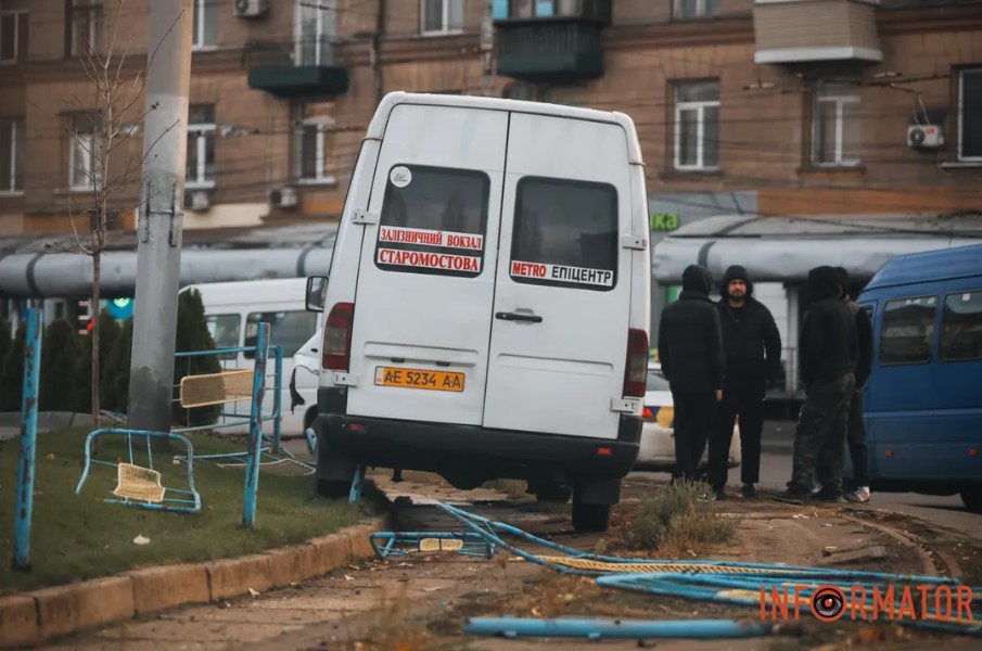 В субботу, 15 ноября, в Днепре на Старомостовой площади недалеко от McDonald's маршрутка №236 влетела в ограждение. Об этом сообщает "Відомо" со ссылкой на "Информатор Днепр".