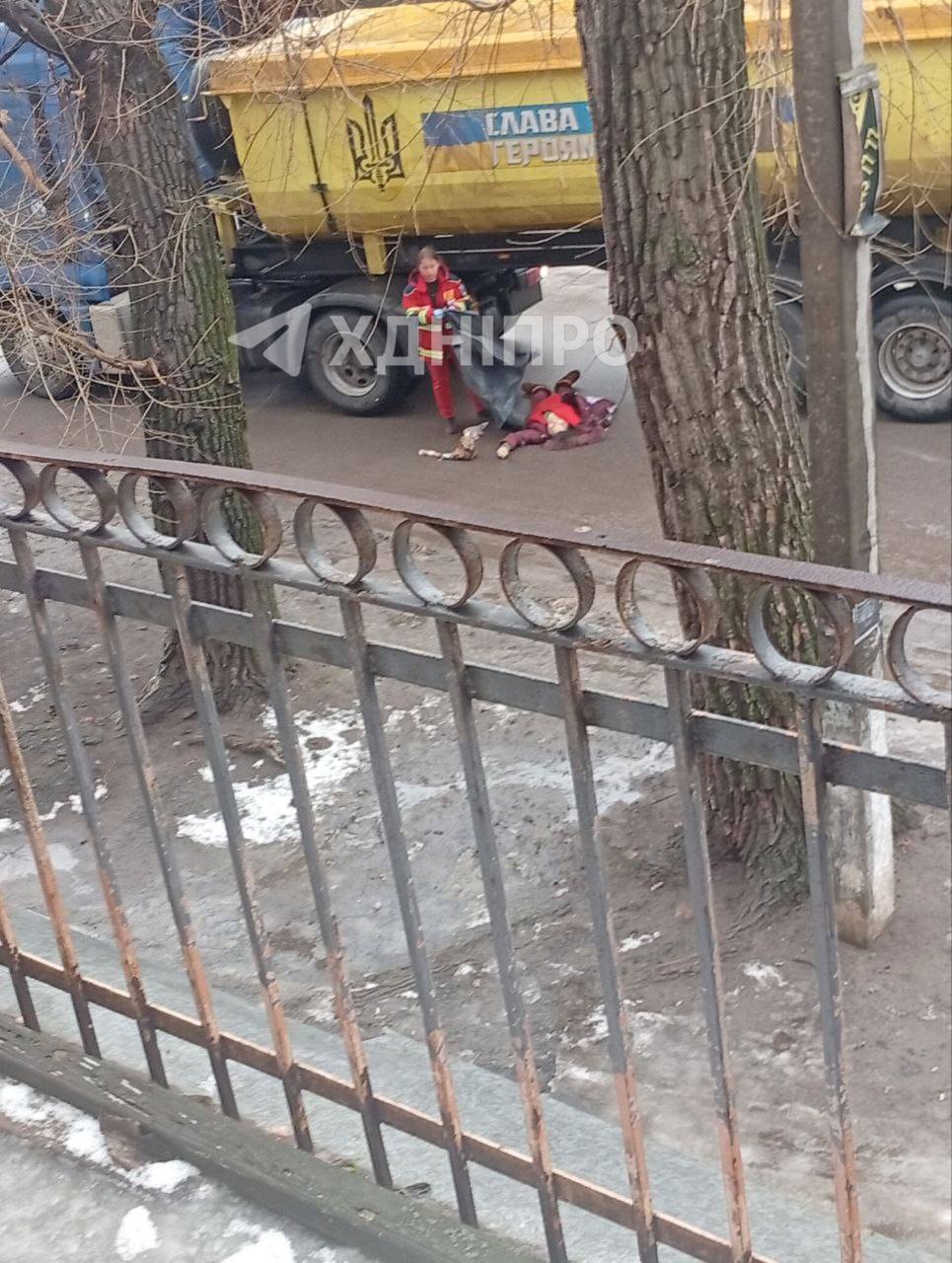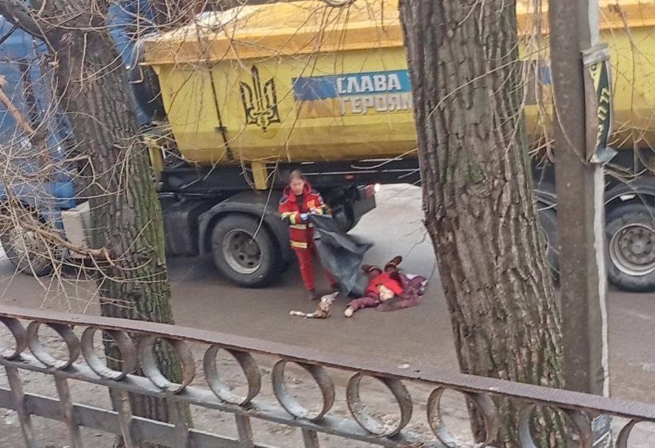 По всей видимости, погибшая женщина лежит под колесами грузовика. На месте работали медики и правоохранители.