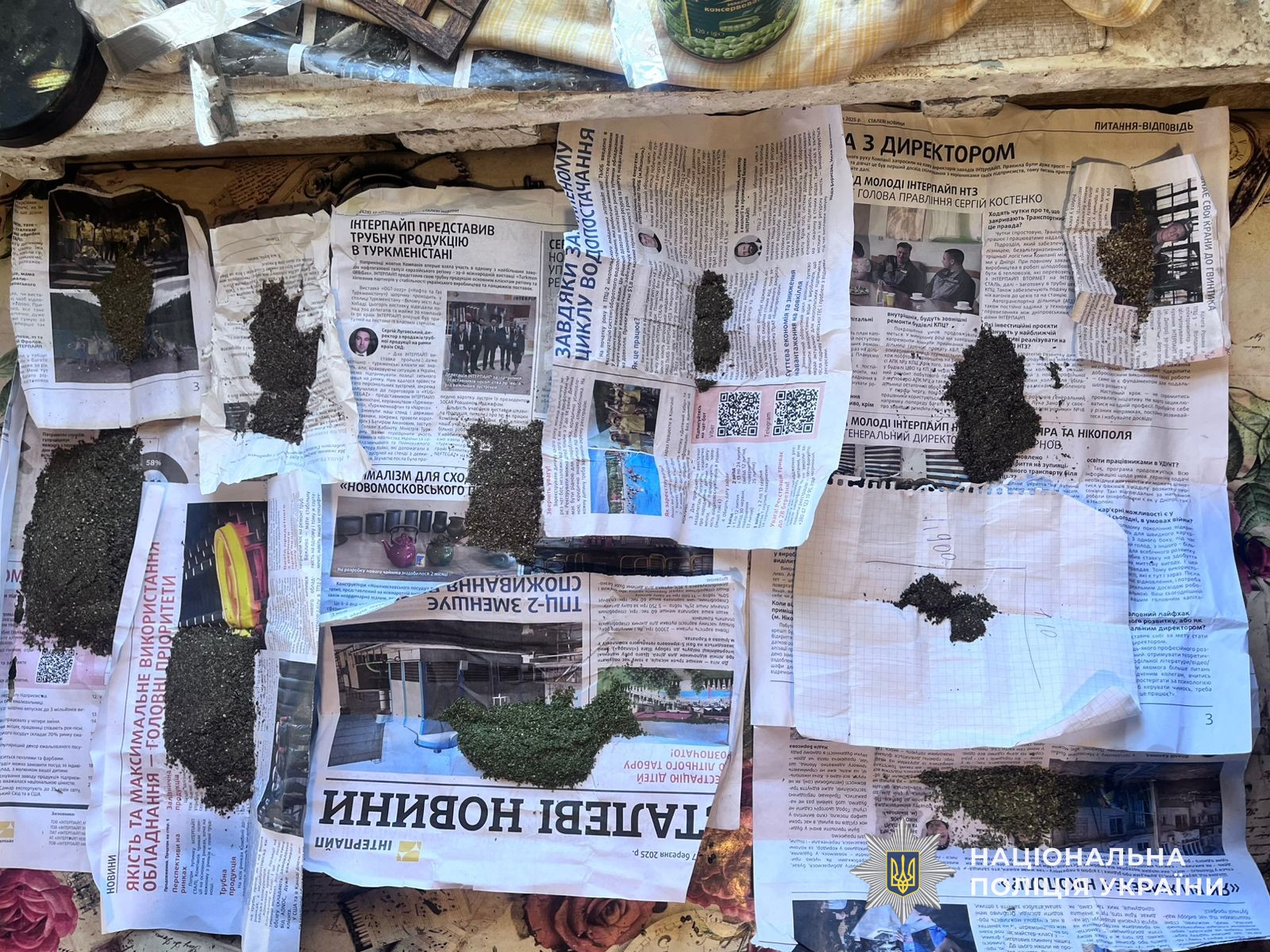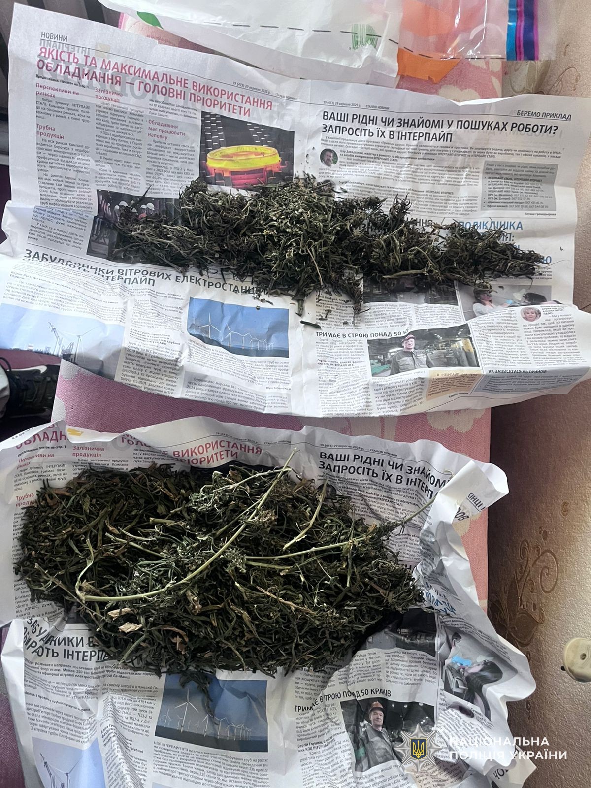 23 февраля во время обыска в доме и придомовых хозяйственных сооружениях полицейские обнаружили и изъяли несколько емкостей и более 40 полиэтиленовых пакетов и бумажных свертков с высушенным и измельченным каннабисом, фрагменты веток и мешок с высушенными ветвями конопли, которые хранились для дальнейшего измельчения.