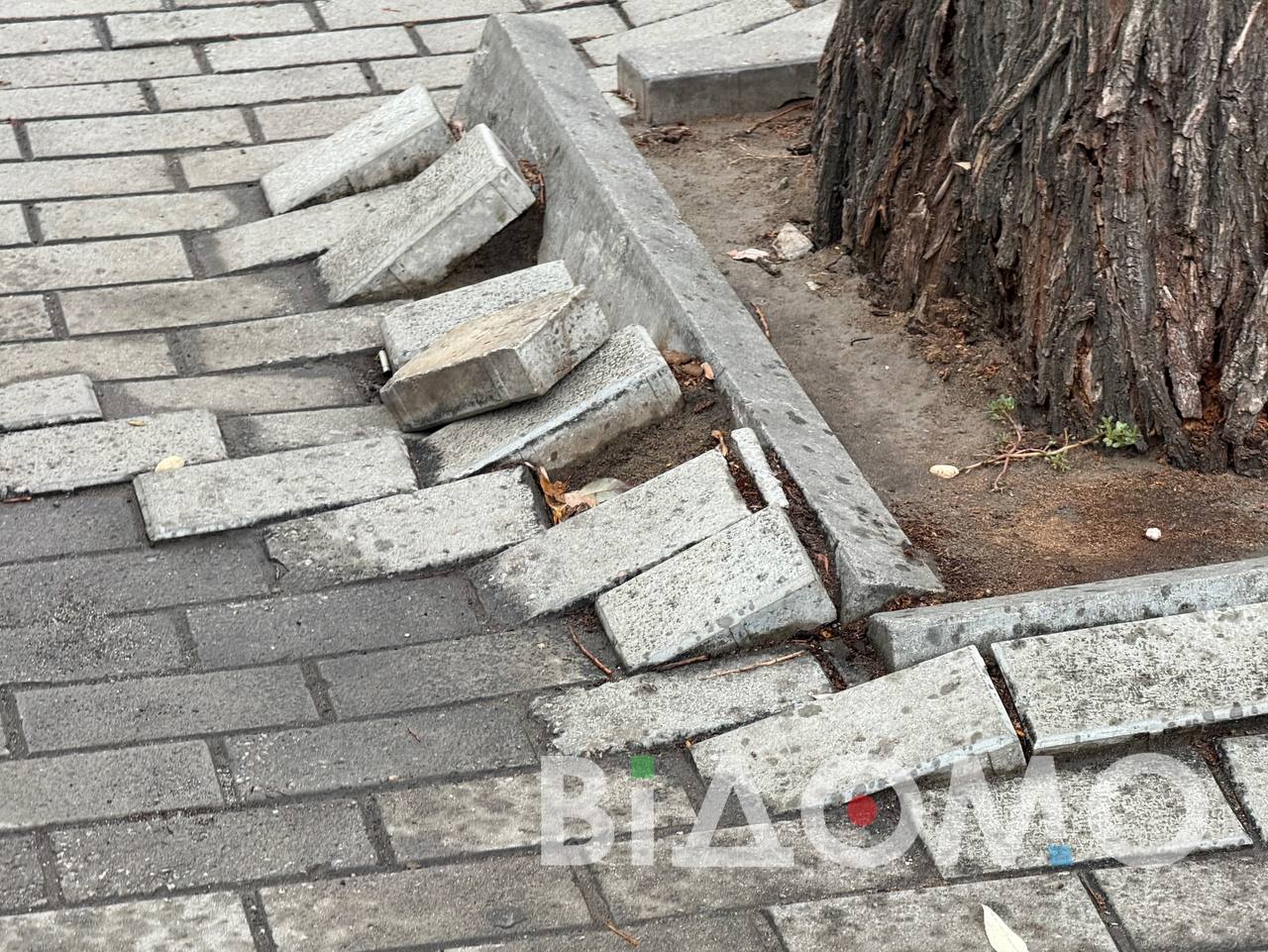 Горожане шутят, что это "борьба природы с цивилизацией", но на самом деле ситуация опасна: люди могут споткнуться, а плитка постепенно разрушается.