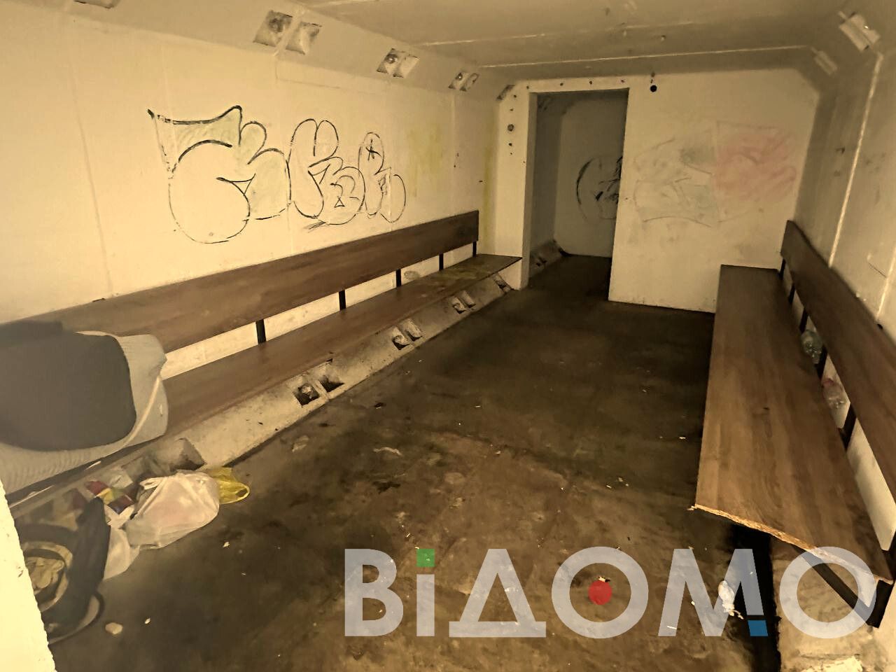 Изюминкой укрытия есть вещи и матрас в одном из уголков укрытия, что в очередной раз доказывает, что и здесь устроили ночлег бездомные.