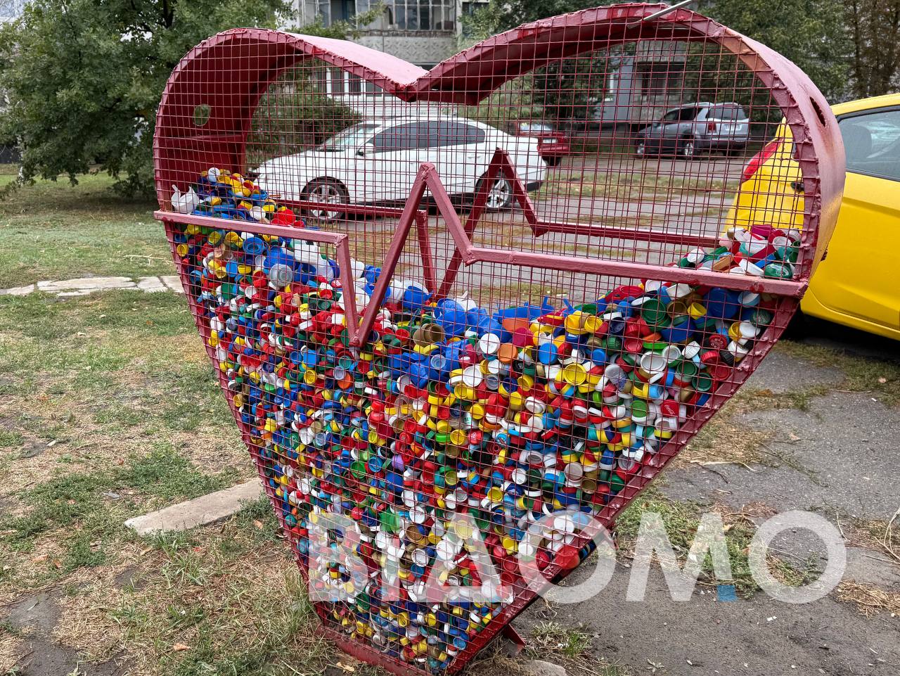 На одной из улиц Павлограда стоит большое металлическое сердце. Внутри него сотни ярких пластиковых крышечек: синих, зеленых, красных. Оно уже почти полно. И это не просто декорация — символ хороших дел, которые могут начинаться с маленького жеста, передает "Відомо".