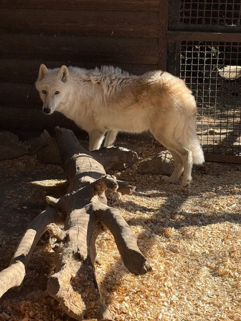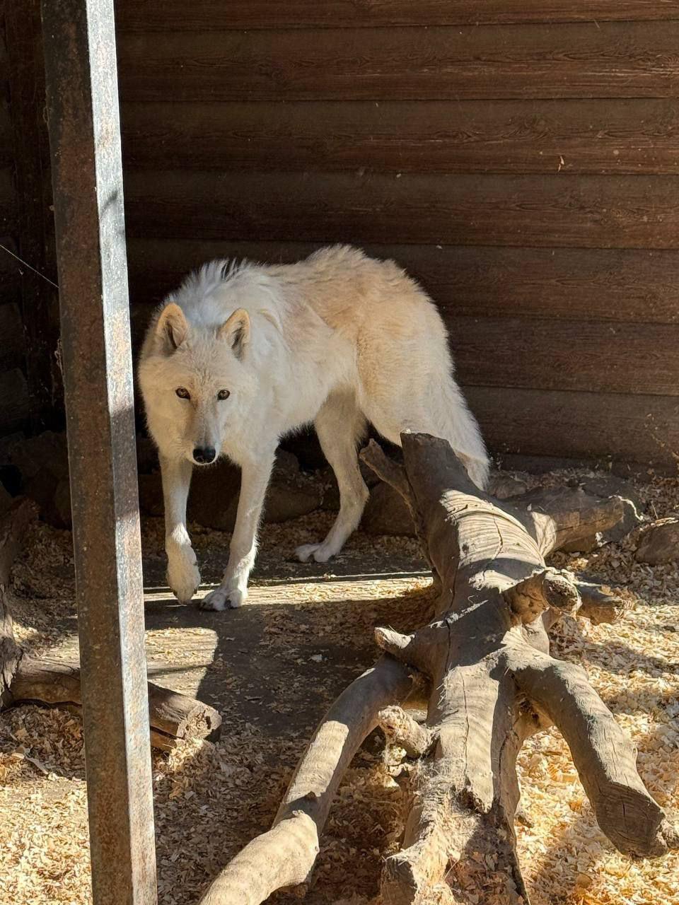 В Днепре в приюте для животных "Пегас" живет необычный белый волк, которого работники выкупили, когда его продавали как живца для собак, передает "Відомо" с ссылкой на Фейсбук-страницу UAnimals.