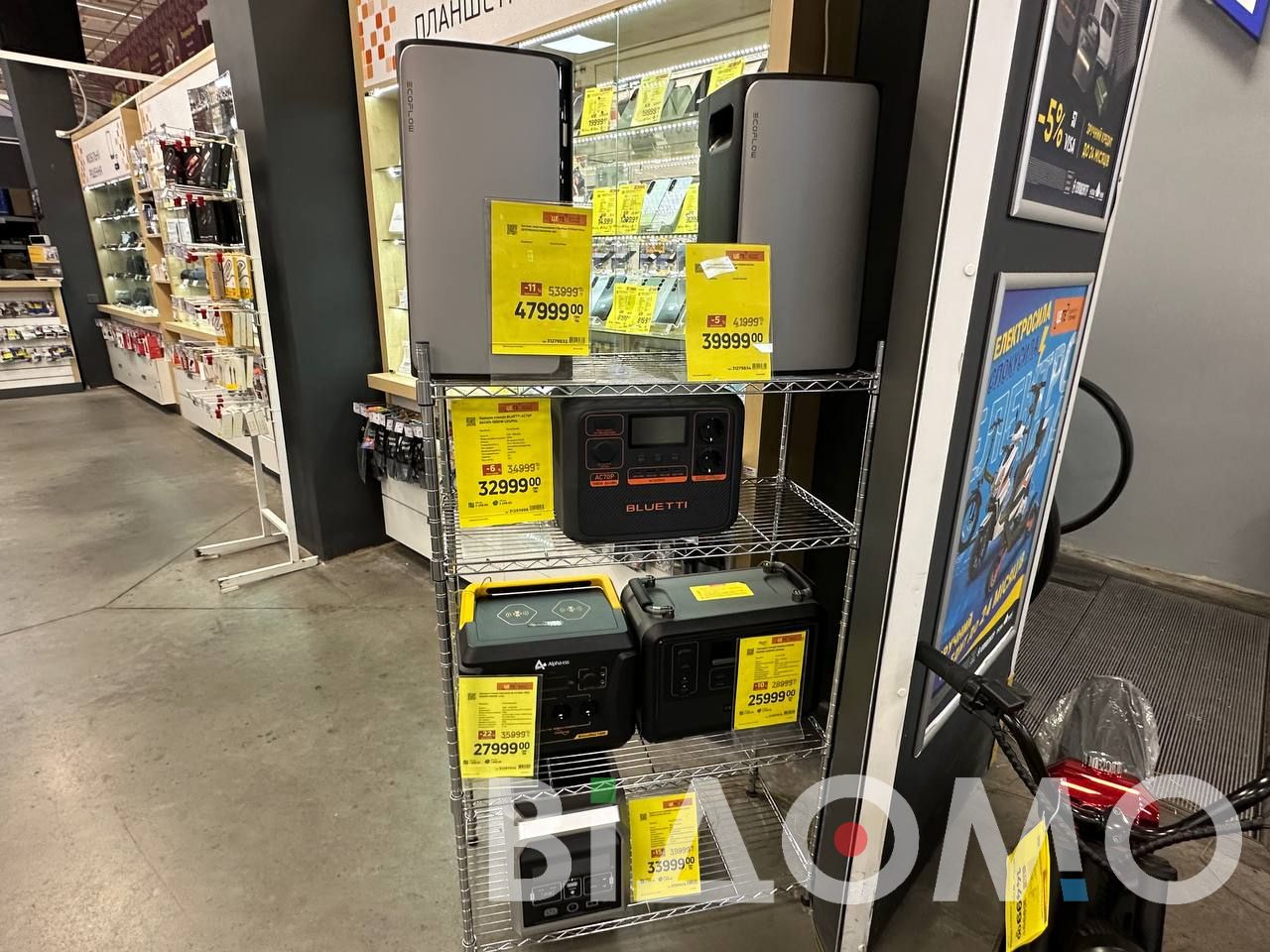 Как рассказали нам продавцы, в свете последних событий, очень вырос спрос именно на зарядные станции, ведь от них можно подзарядить не только гаджеты, но и подключить бытовые приборы и даже заживить всю квартиру на время.