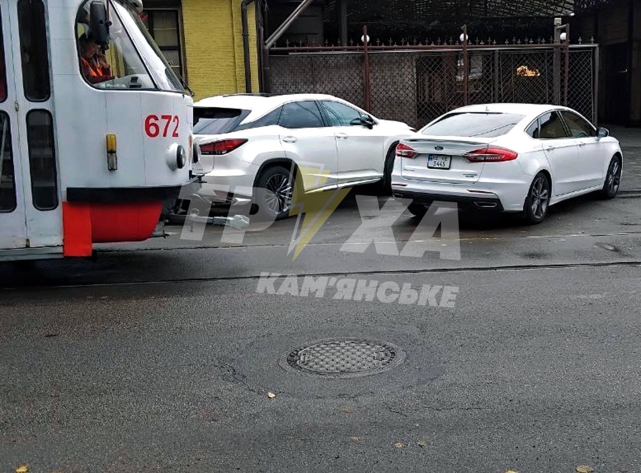 В Каменском 21 октября у Дачи легковые автомобили преградили путь трамваям, передает "Відомо" с ссылкой на "Труха Каменское".