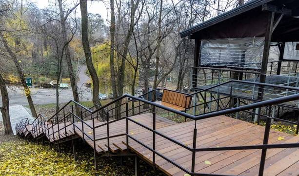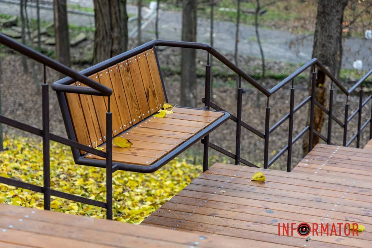 По состоянию на 17 ноября новая лестница уже установлена. Они совмещают деревянные элементы и металлическую конструкцию , а также оснащены удобными лавочками для отдыха посетителей.