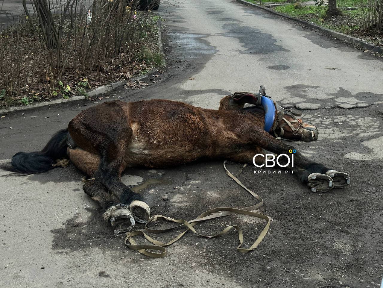 В Кривом Роге на Соцгороде произошел инцидент, поразивший местных жителей жестокостью и безразличием. Прямо посреди улицы упала и умерла лошадь, запряженная в телегу. Свидетели рассказывают — животное упало внезапно, в сильных конвульсиях. Об этом передает "Відомо" со ссылкой на СВОИ Кривой Рог.