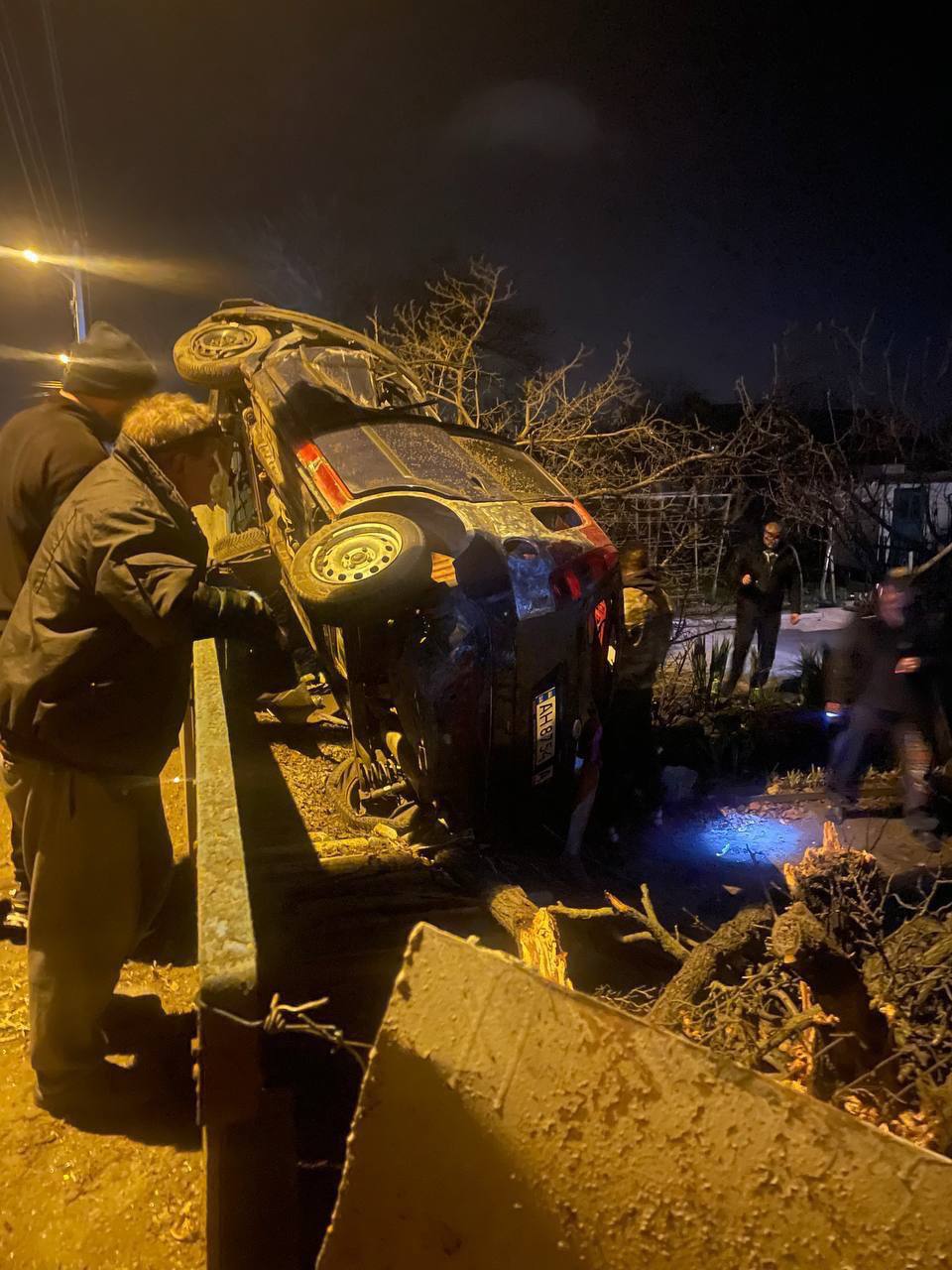 Там водитель легкового автомобиля на бешеной скорости перелетел забор частного домовладения, зацепив его, и залетел прямо во двор.