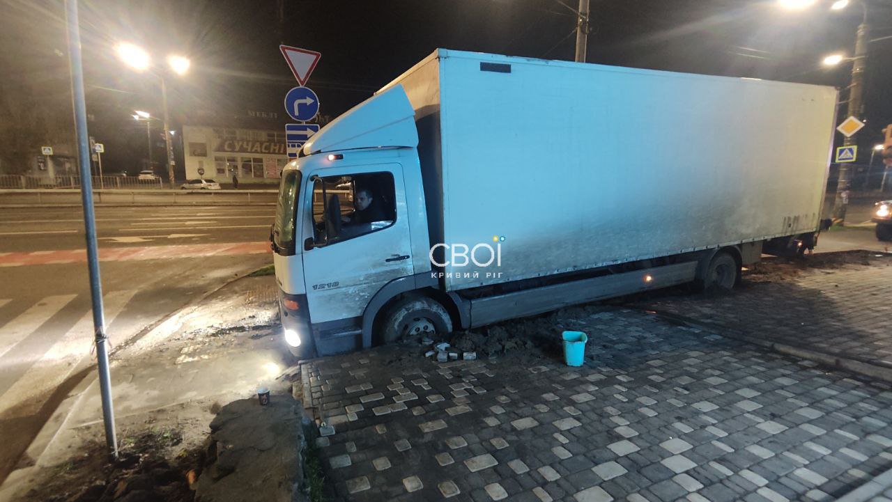 На 173 квартале в Кривом Роге вечером 10 декабря грузовой автомобиль одной из известных сетей магазинов заехал на тротуар, чтобы разгрузить товар и попал в подземную ловушку, передает "Відомо" с ссылкой на Телеграмм канал "Свої — Кривий Ріг".
