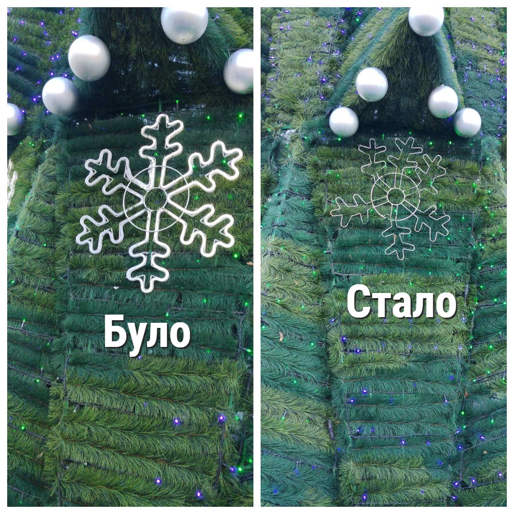 Отмечается, что главную красавицу района установили 5 декабря как часть новогоднего городка для детей и жителей района. Но уже через несколько дней из елки исчезли шарики, а чуть позже и световые снежинки.