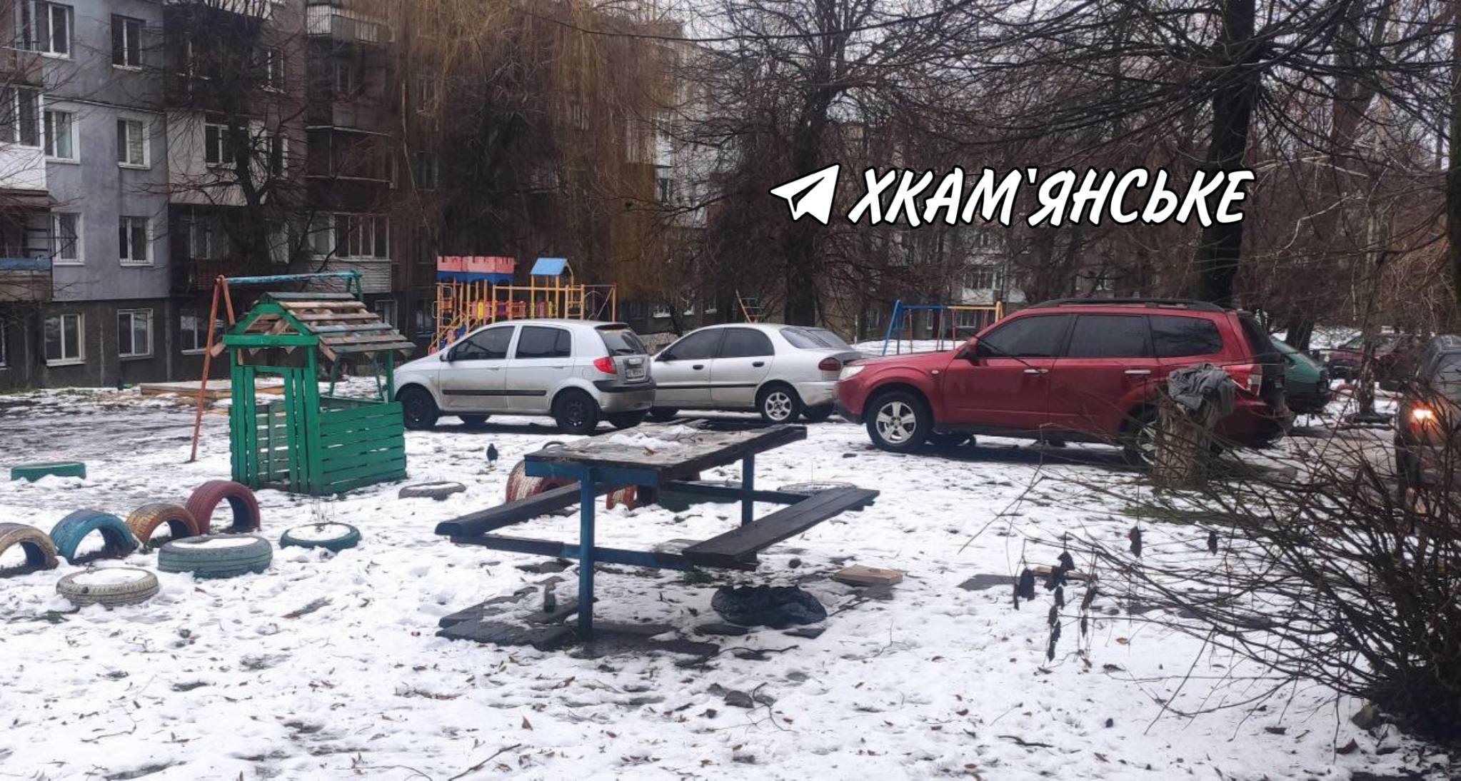 На улице Максима Чиженко, 74 (бывшая Матросова) в Каменском водители легковых автомобилей превратили двор и детскую площадку в парковочное пространство, передает "Відомо" с ссылкой на Телеграмм-канал "ХКаменское".