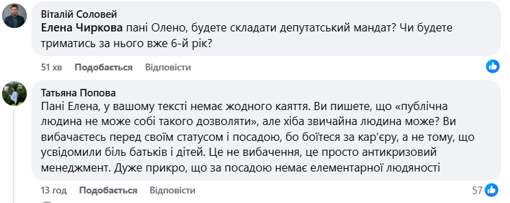 История также ударила по репутации всего облсовета. Потому что после слов депутатки приходится отдельно объяснять, что унижать больных детей недопустимо, это уже кризис не только одной политики, но и политической среды, которая долго толковала подобный стиль общения. Именно поэтому дальнейшее развитие этой истории - рассмотрение комиссии по этике, позиция омбудсмана и возможные другие политические последствия - будет иметь значение не только для Чирковой лично.