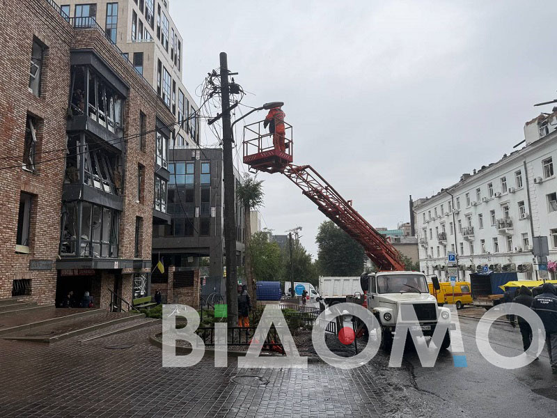 В результате удара повреждено офисное здание, в том числе крыша, из-за чего существует угроза разрушения конструкций и обвала. Профильные специалисты обследуют здание.
