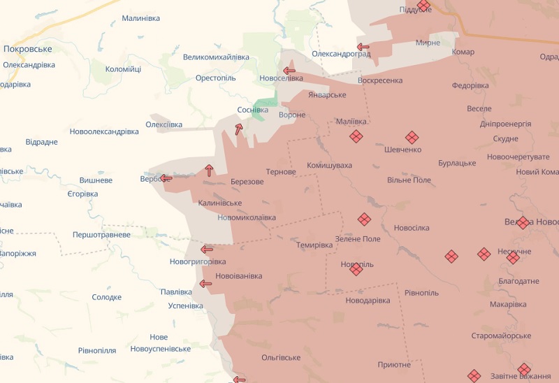 За последние сутки россияне имели продвижение на территории Днепропетровщины и оккупировали село Терновое в Синельниковском районе, передает "Відомо" со ссылкой на аналитическо-мониторинговый проект DeepState .
