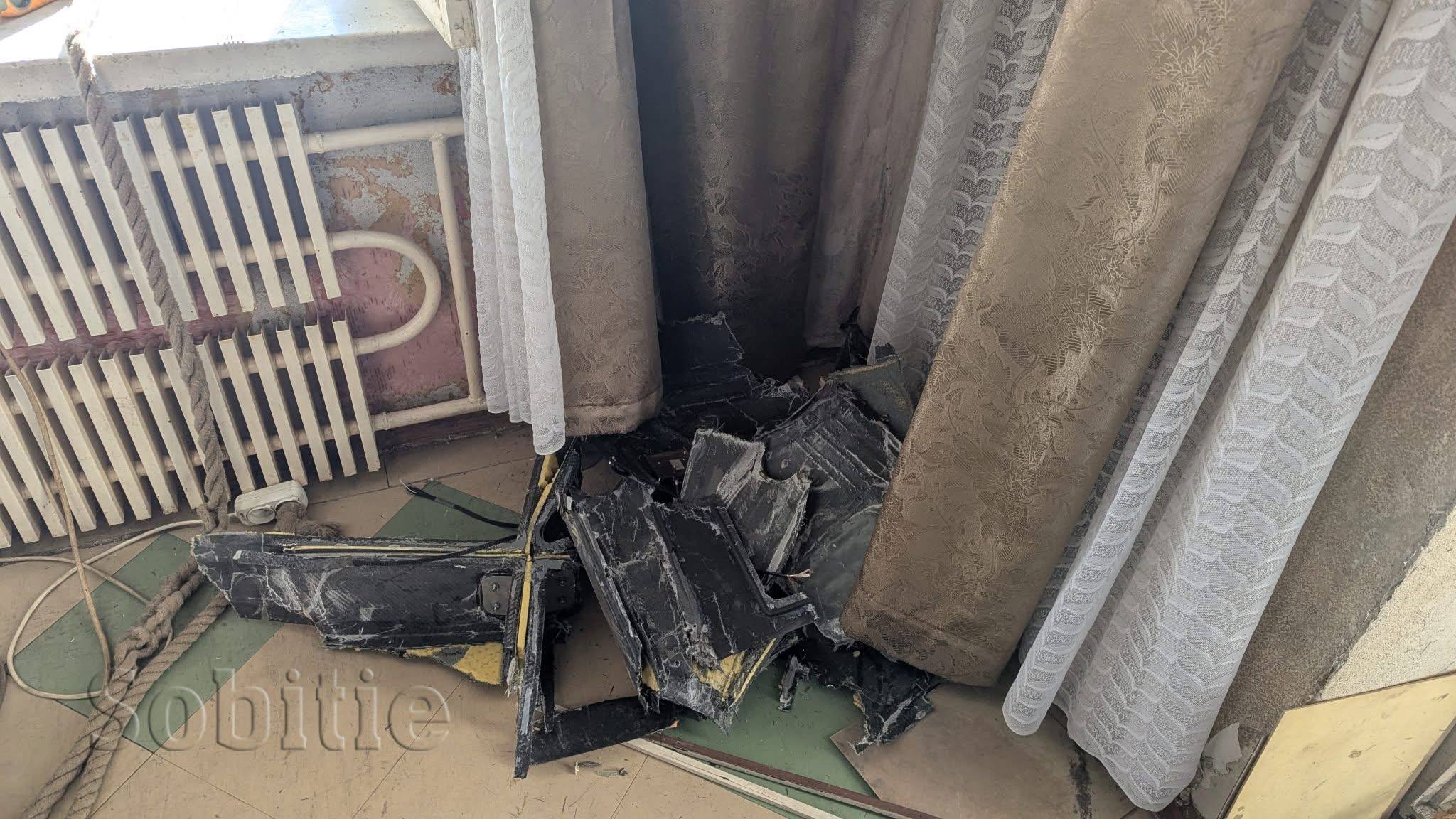 Как стало известно, вражеский БпЛА врезался в балкон квартиры на 11 этаже, но, к счастью, не разорвался. Его остатки можно увидеть прямо в квартире.