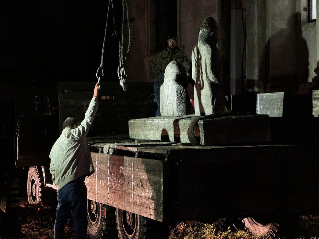 Чтобы перевезти статуи в Днепр, пришлось привлечь грузовик и кран. Эвакуация каменных статуй длилась около семи часов – грузовик с историческими достопримечательностями проехал более 120 километров.