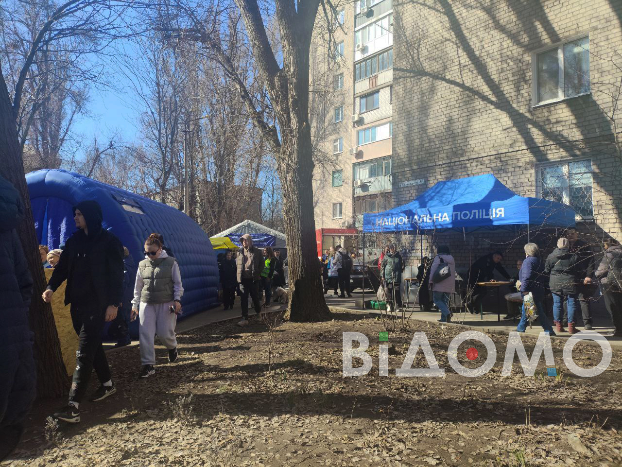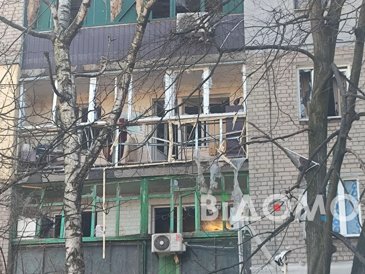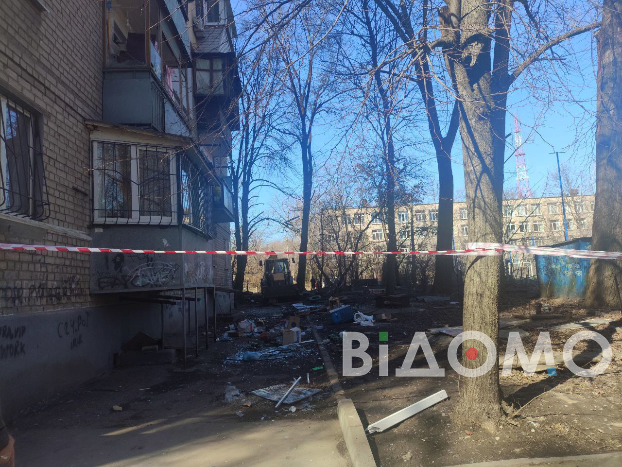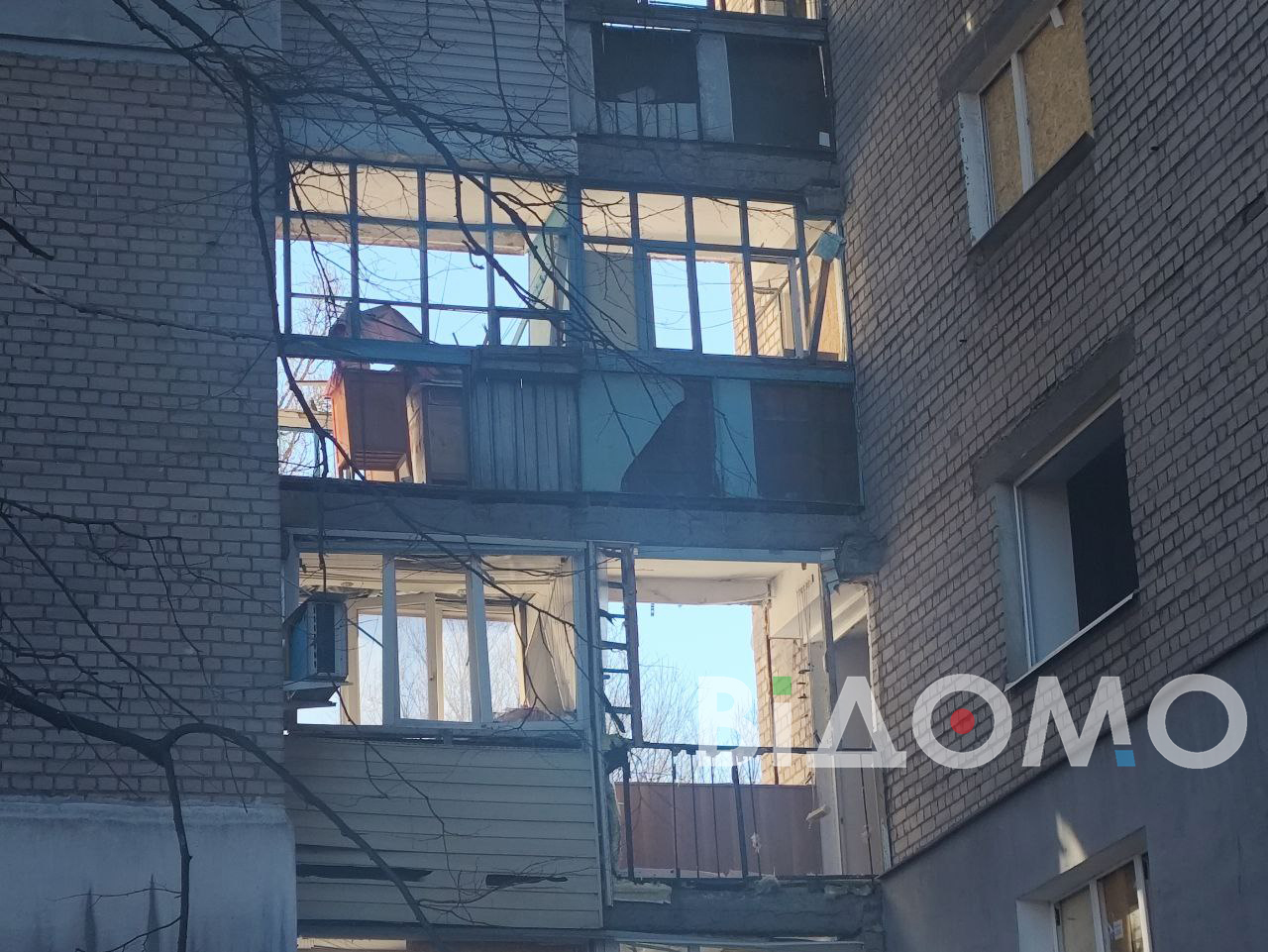 Корреспондентка "Відомо", работающая на месте прилета, сообщает, что в одной из девятиэтажек фактически не осталось уцелевших окон. Жители выносят из квартир поврежденные вещи, у дома много стекла и строительного мусора. На месте работает коммунальная техника, а людям выдают ДСП, чтобы временно закрыть выбитые окна.