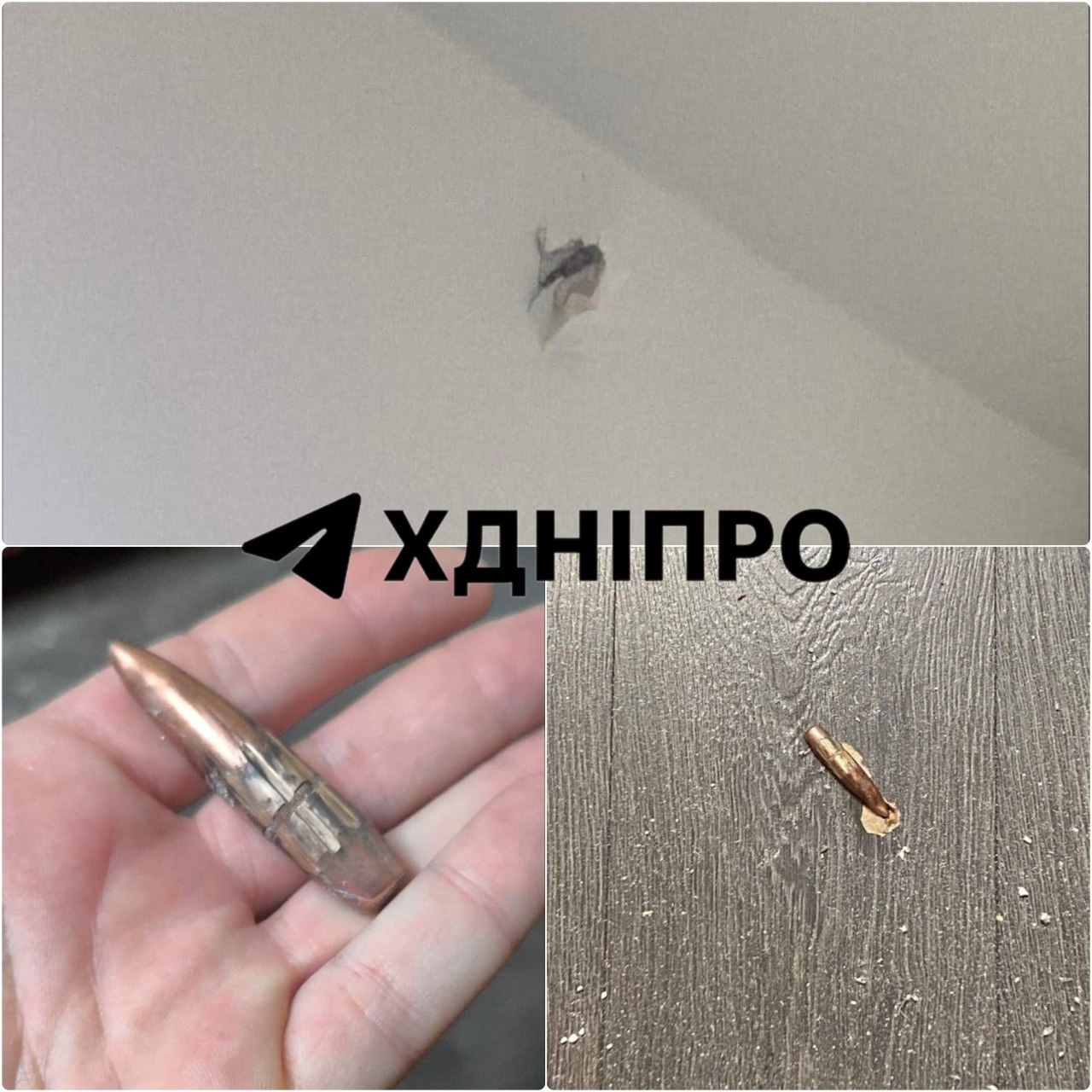 Как передает "Відомо" с ссылкой на Телеграмм-канал "ХДнепр", во время отражения вражеской атаки нашими защитниками из Воздушного командования "Восток ", одна из пуль пробила потолок и повредил ламинат в доме.
