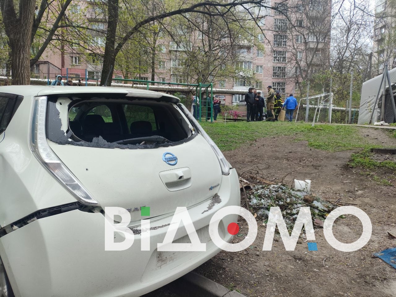 Досталось и автомобилям, которые на момент атаки находились во дворе.