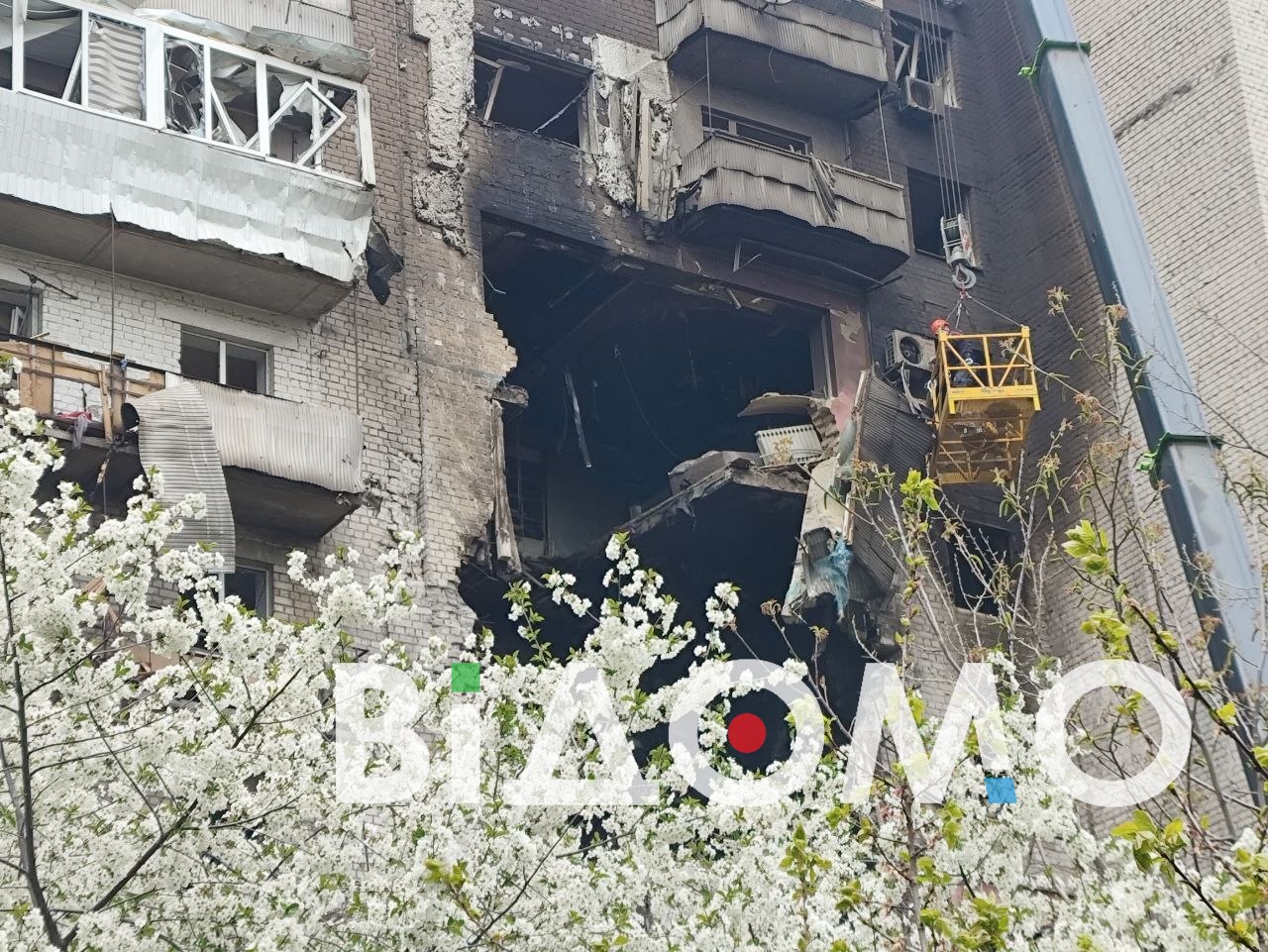 Утро обычного весеннего дня снова началось с разбора завалов. В доме, куда попал враг, разрушены квартиры с 8-го по 6-этаж. Теперь в доме, где еще вчера бурлила жизнь, – выжженная дыра.