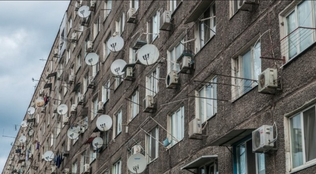 Особливу увагу історія "Пентагону" зайняв період активного поширення телебачення. Мешканці почали самостійно встановлювати антени, проте через масивні стіни сигнал проходив погано. Пізніше мешканці масово обзавелися супутниковими тарілками, які буквально обліпили фасад будівлі.