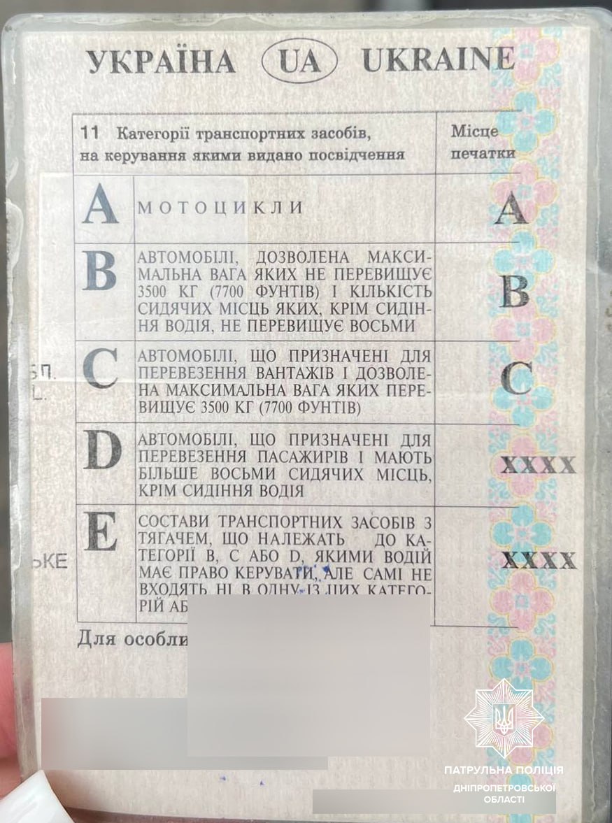 У Чечелівському районі інспектори зупинили автомобіль Renault за перевищення швидкості. Водійка надала документи з ознаками підробки. База МВС також не містила жодної інформації про це посвідчення