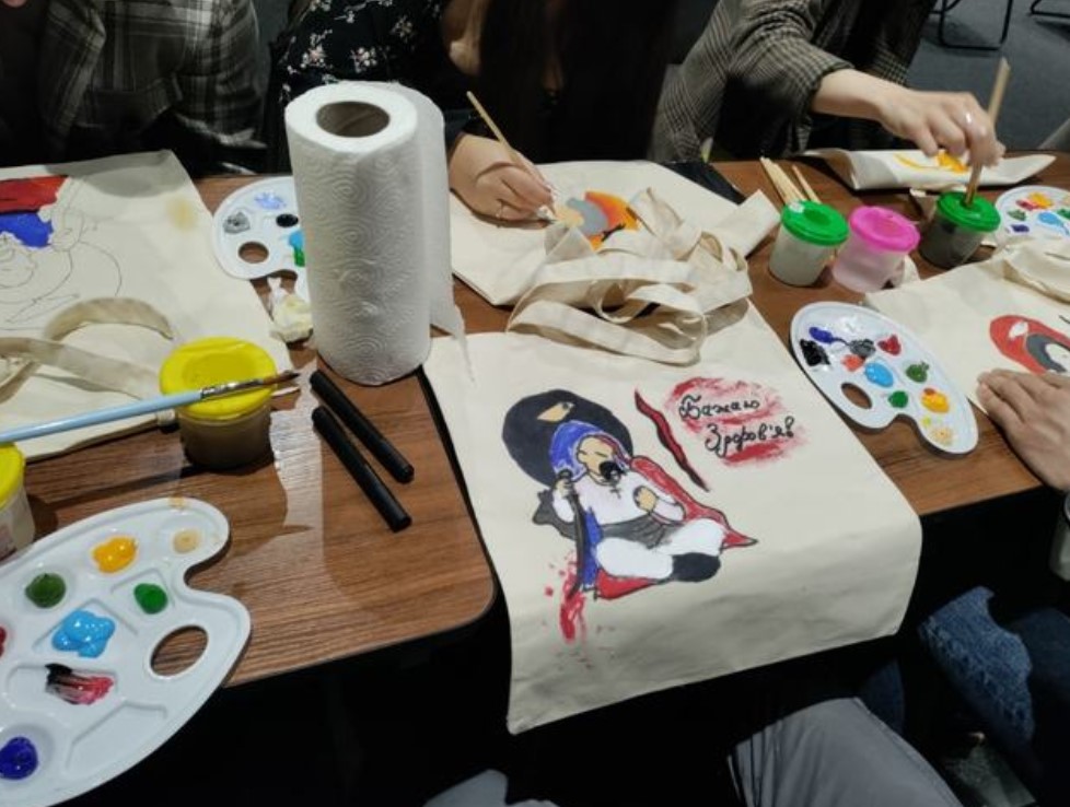 Практична частина акції стала справжнім творчим випробуванням. Учасники майстер-класу створювали власні зображення культового персонажа на сумках-шоперах. Кожна робота виявилася унікальною – хтось робив ставку на реалізм, хтось на символіку та емоції. У результаті кожна сумка перетворилася на своєрідний оберіг, що виражає особисте сприйняття пам'яті, сили та подяки.
