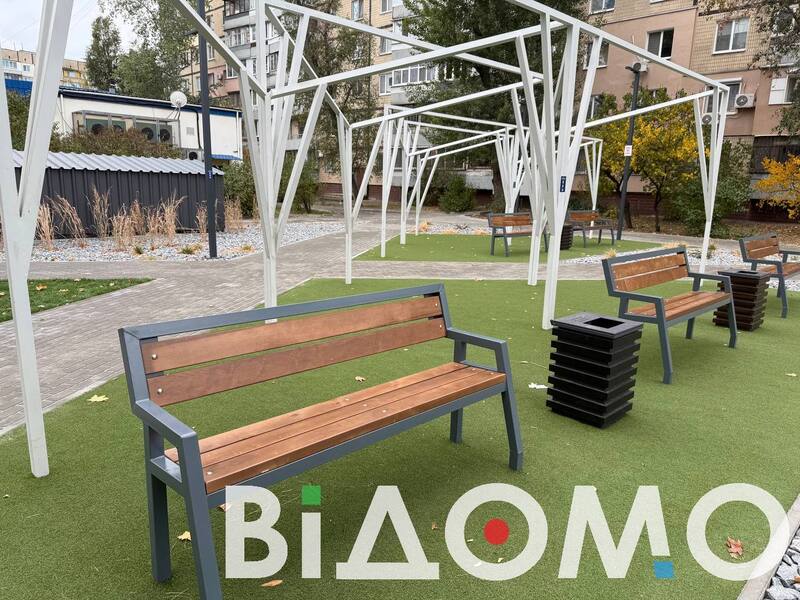 У Дніпрі на проспекті Героїв, 41 біля недобудованого торгівельно-розважального комплексу виник новий мальовничий сквер з різними зонами відпочинку. Про це повідомляє "Відомо”.