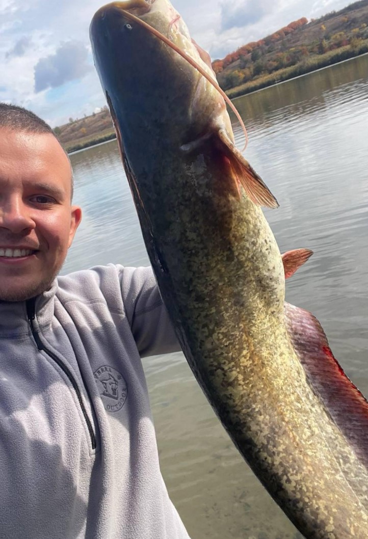 Щасливчик опублікував фото та відео, на яких він тримає багатокілограмову рибу, за розміром майже рівну половині його зростання. По кадрах видно, що видобуток важить чимало кілограмів — чоловік ледве тримає сома в руках.