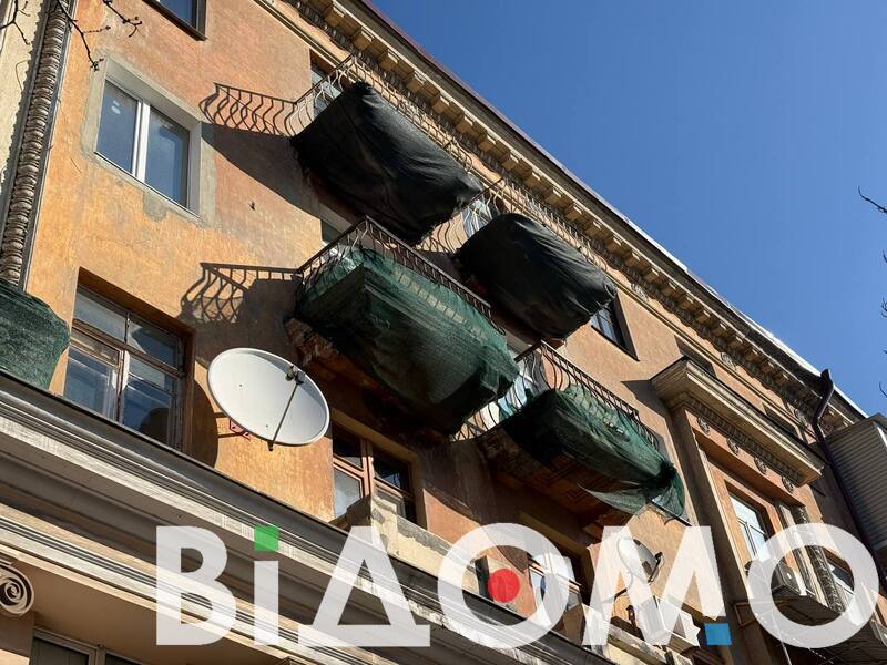 На деяких лоджіях чи то жителі, чи то комунальники вивісили сітки, які мають "вберегти” людей від каміння.