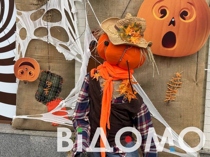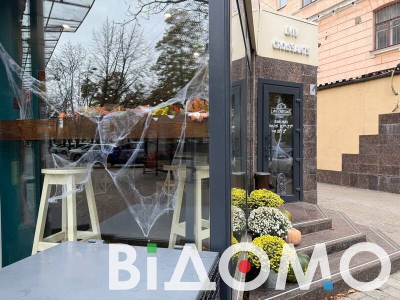 Інший магазин "закутаний” у помаранчево-білу павутину. Над входом висить великий банер гарбуза, який посміхається. Така локація створює неймовірну осінню атмосферу, що додає неабиякого настрою.