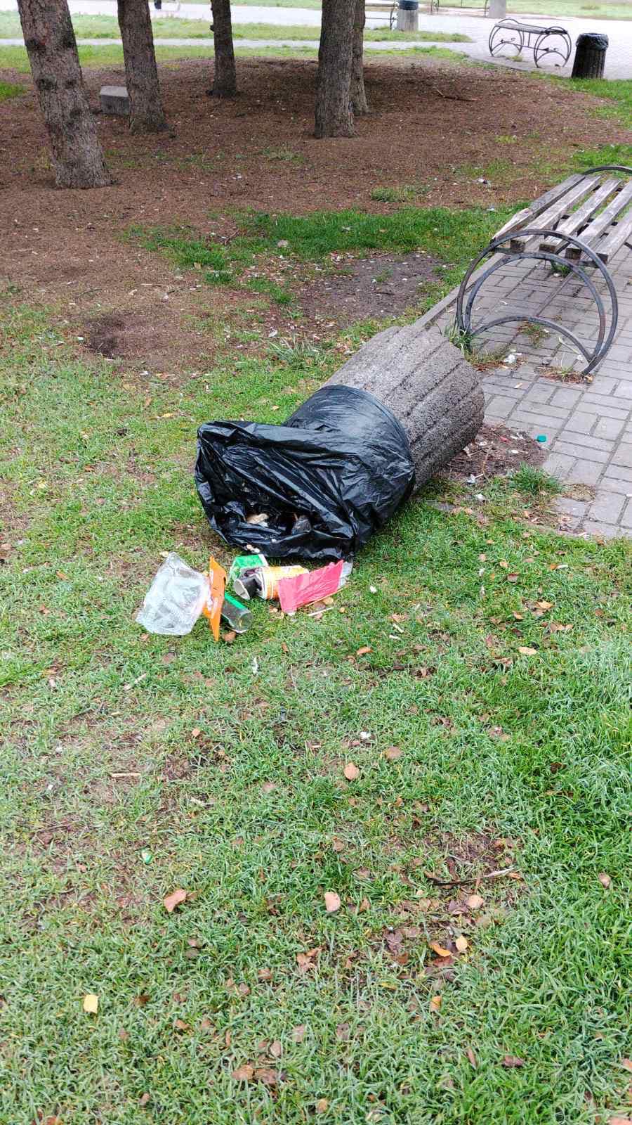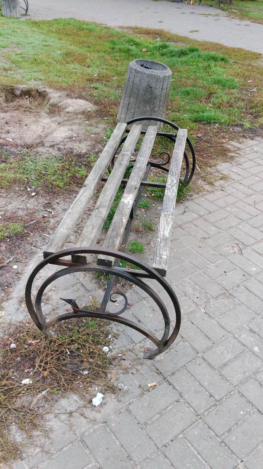 Як видно на фото, хулігани цілеспрямовано вирвали дошки та понівечила опори у лавках, а також повалили та розбили бетонні урни для сміття.