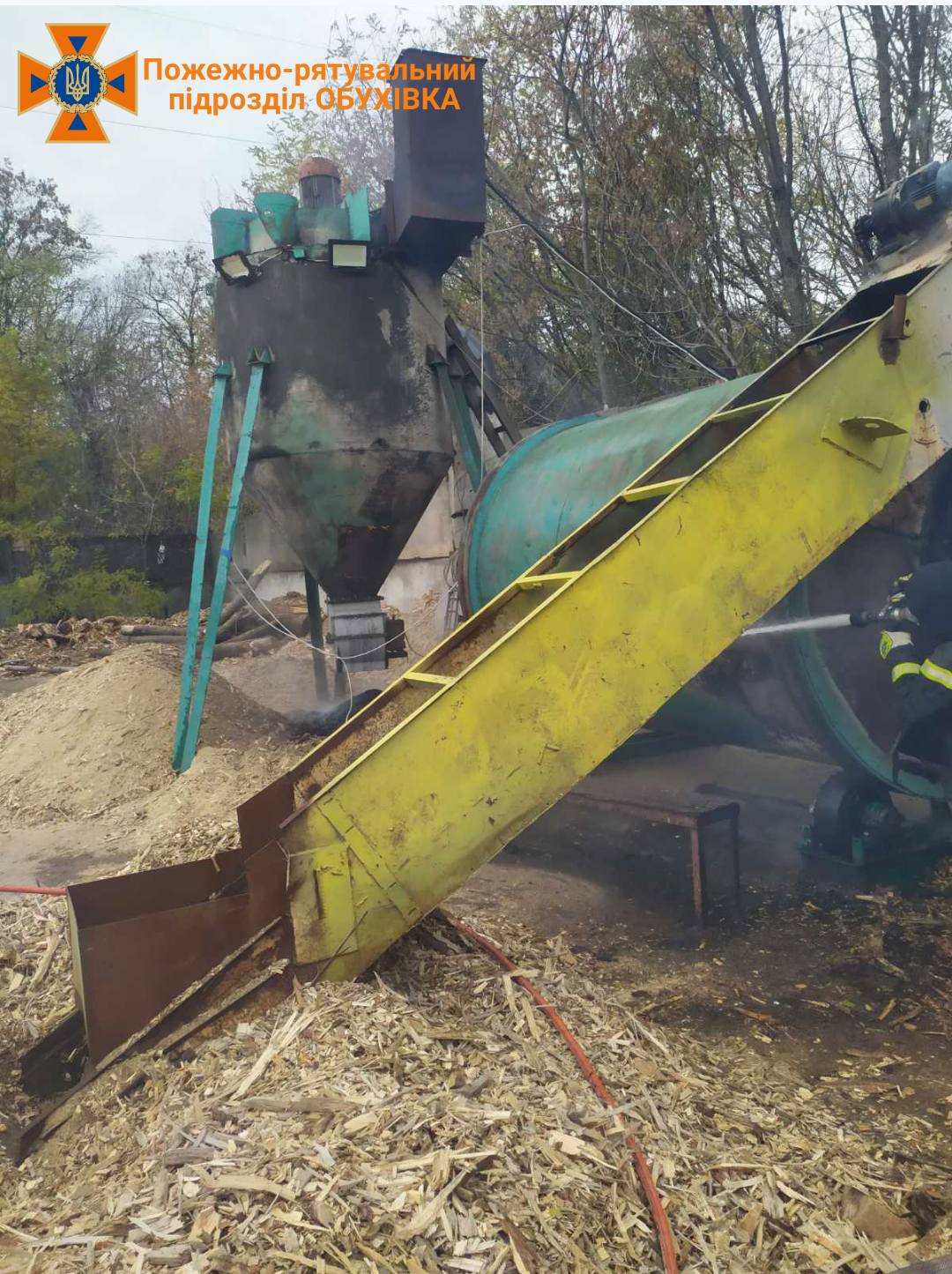 О 12:42 надійшов виклик про пожежу на одному з підприємств. На місці вогнеборці визначили, що горить сушильна машина для пиломатеріалів. Працівники підприємства попередили, що в даному типу машин існує ризик вибуху.