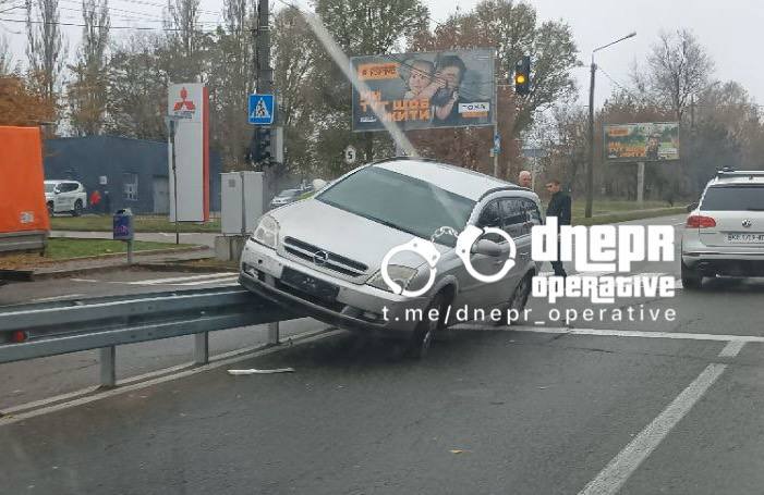 Вранці у понеділок, 10 листопада, у Дніпра на вулиці Космічній легковий автомобіль Opel залетів на відбійник. Про це повідомляє "Відомо" з посиланням на Telegram-канал "Дніпро оперативний. Війна".