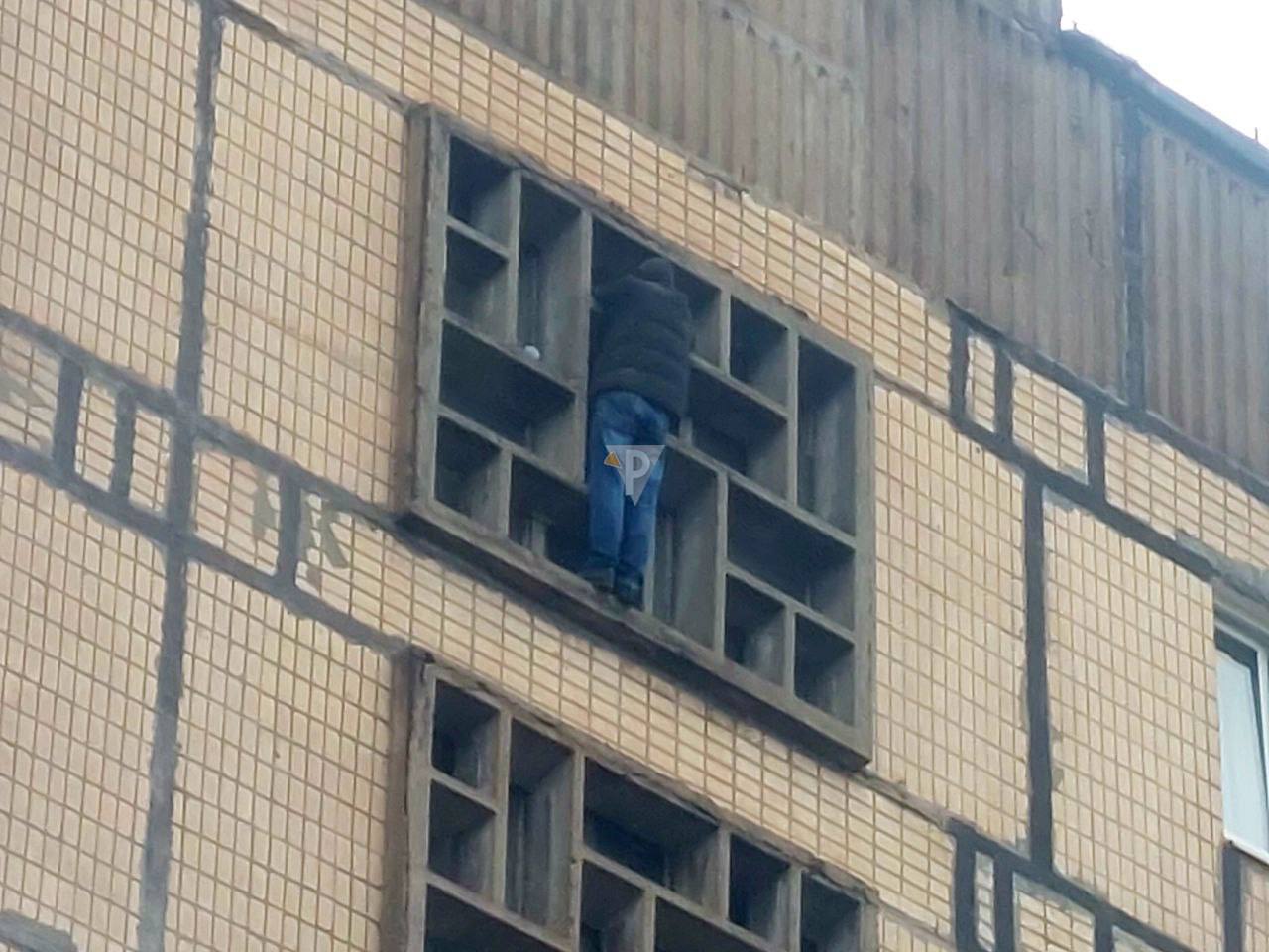 За словами очевидців, чоловік, стоячи на краю 9-го поверху, кликав свою дружину та вимагав, щоб вона "подивилася, як він стрибне".