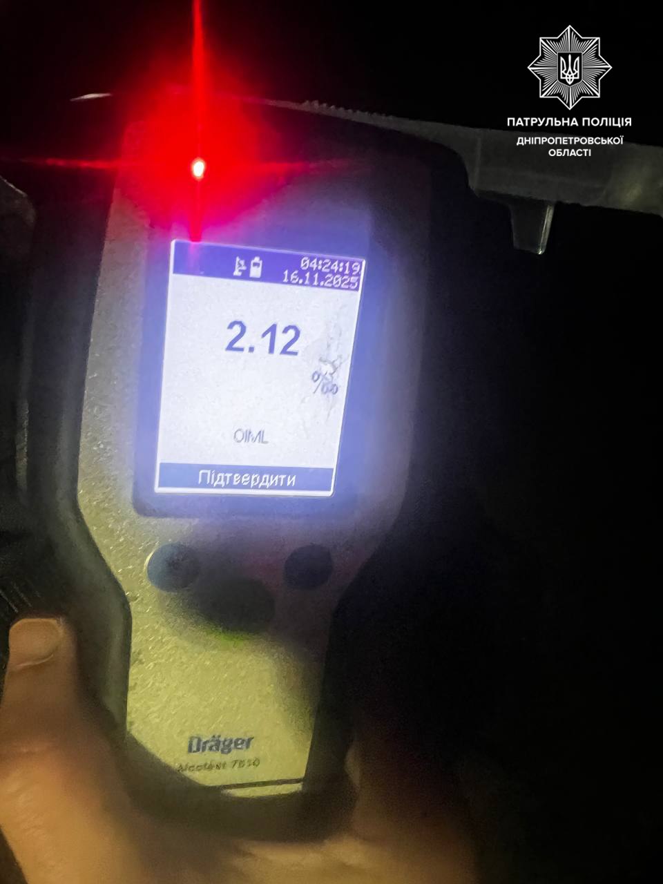 Чоловік пройшов освідування на місці за допомогою Драгеру. Результат був позитивний — 2,12 проміле алкоголю в його крові.