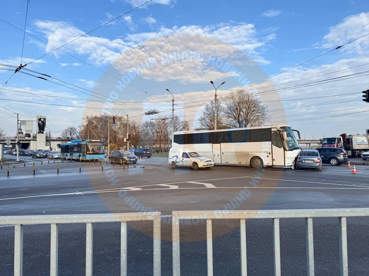 Вранці у суботу, 22 листопада, у Дніпрі на Січеславській Набережній біля Нового мосту сталася ДТП за участю автобуса та легкового автомобіля. Про це повідомляє "Відомо" з посиланням на міські Telegram-канали.