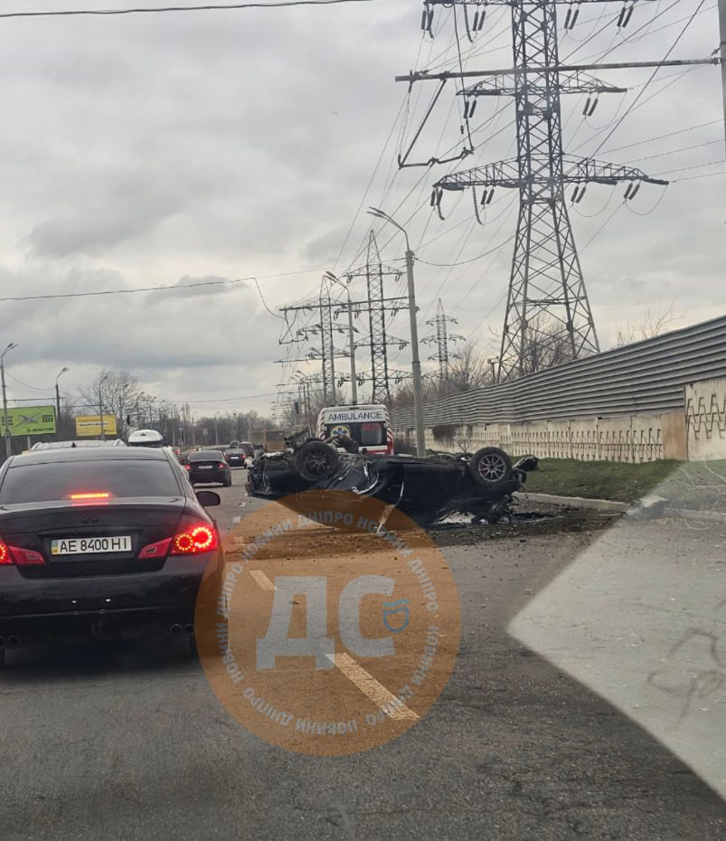 Аварія сталася біля Кайдацького мосту. Що саме сталося – наразі не уточнюється, однак легковий автомобіль лежить на дорозі на даху. На місці інциденту працює "швидка" допомога.