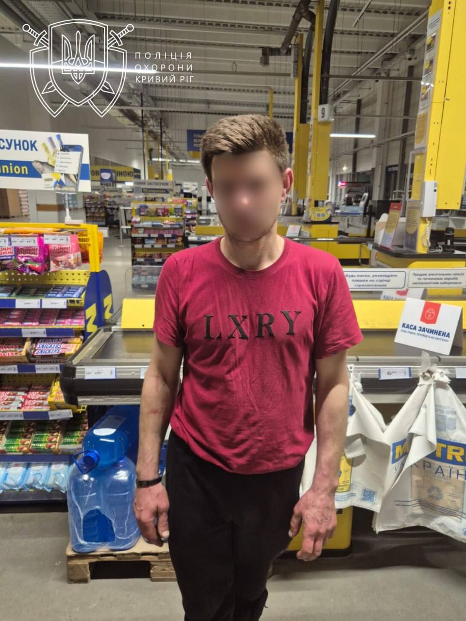 Під час перевірки на місці виклику правоохоронці виявили 36-річного чоловіка, який перебував у неадекватному стані та, ймовірно, під впливом невідомих речовин. Хуліган пошкодив скляні двері пожежного виходу та незаконно проник до приміщення магазину.