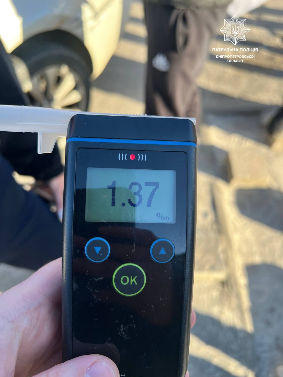 Під час спілкування з водійкою поліцейські помітили в неї ознаки алкогольного сп’яніння. Жінка погодилася пройти медогляд за допомогою приладу "Драгер". Результат – 1.37 проміле алкоголю в крові.