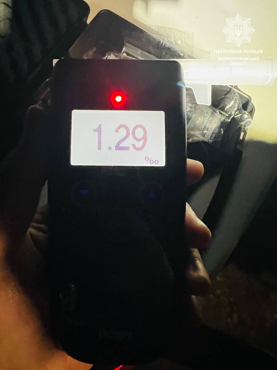 Згодом у Новокодацькому районі екіпаж зупинив автомобіль Mitsubishi. Під час спілкування у водія помітили ознаки сп’яніння. Прилад "Драгер" показав вміст алкоголю в крові чоловіка – 1.29 проміле.