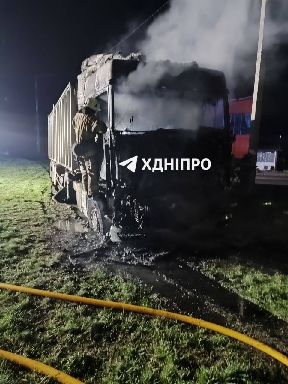 У ніч проти суботи, 4 квітня, у Дніпрі на Близнюківському узвозі палала фура. Про це повідомляє "Відомо" з посиланням на міські Telegram-канали.
