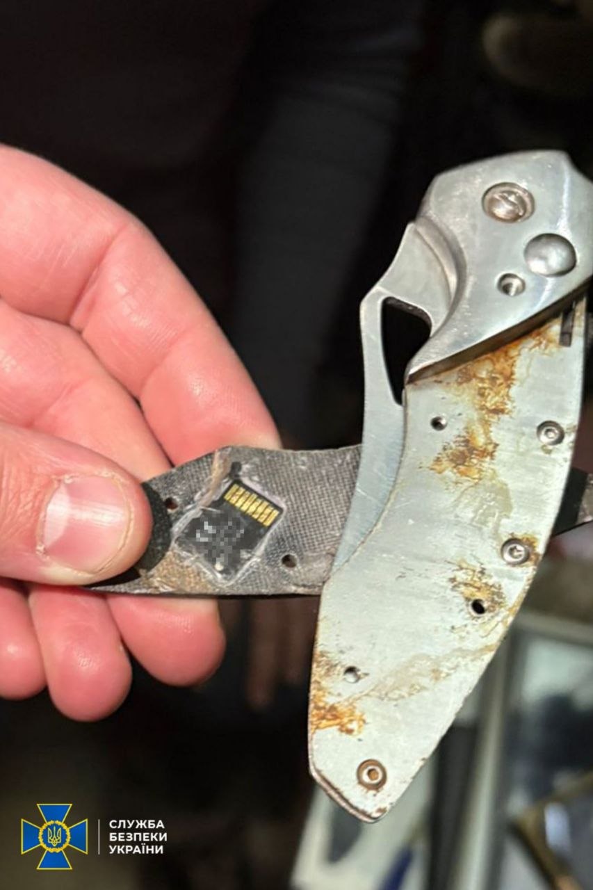Під час обшуків у нього вилучено смартфон та флеш-носій, замаскований у складеному ножі, із доказами роботи на російську розвідку.