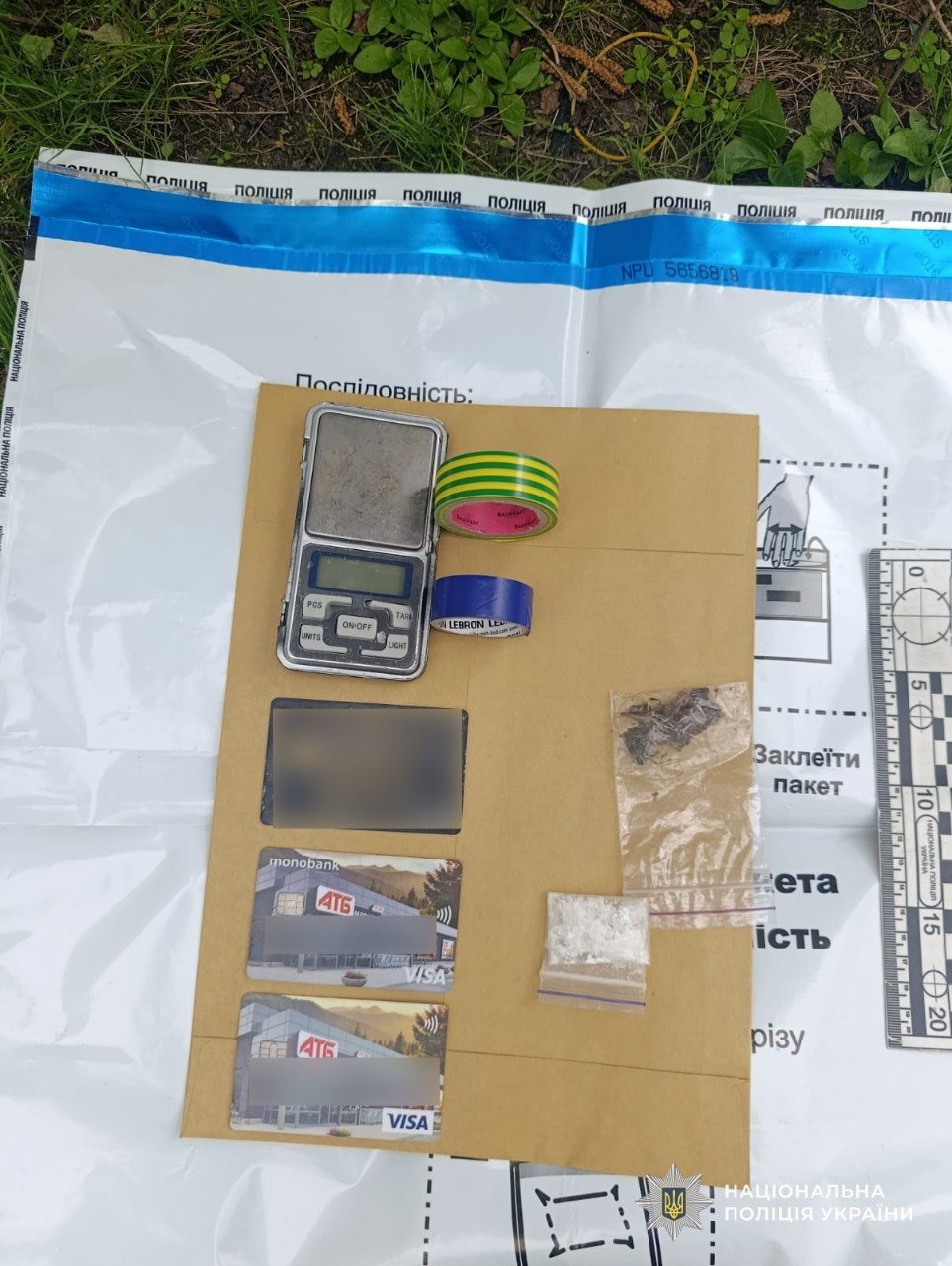 Крім того, правоохоронці конфіскували фасувальні матеріали, електронні ваги, мікропробірки, мобільні телефони, банківські картки та чорнові записи з товарно-транспортними накладними, які є прямими доказами незаконної діяльності. Усі знахідки вже направлено на експертизу.