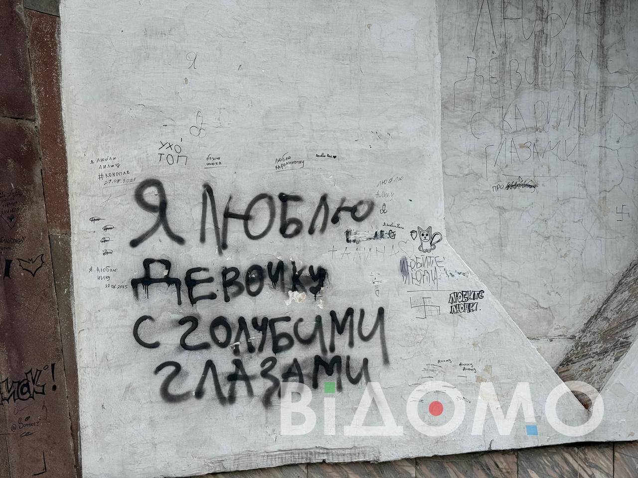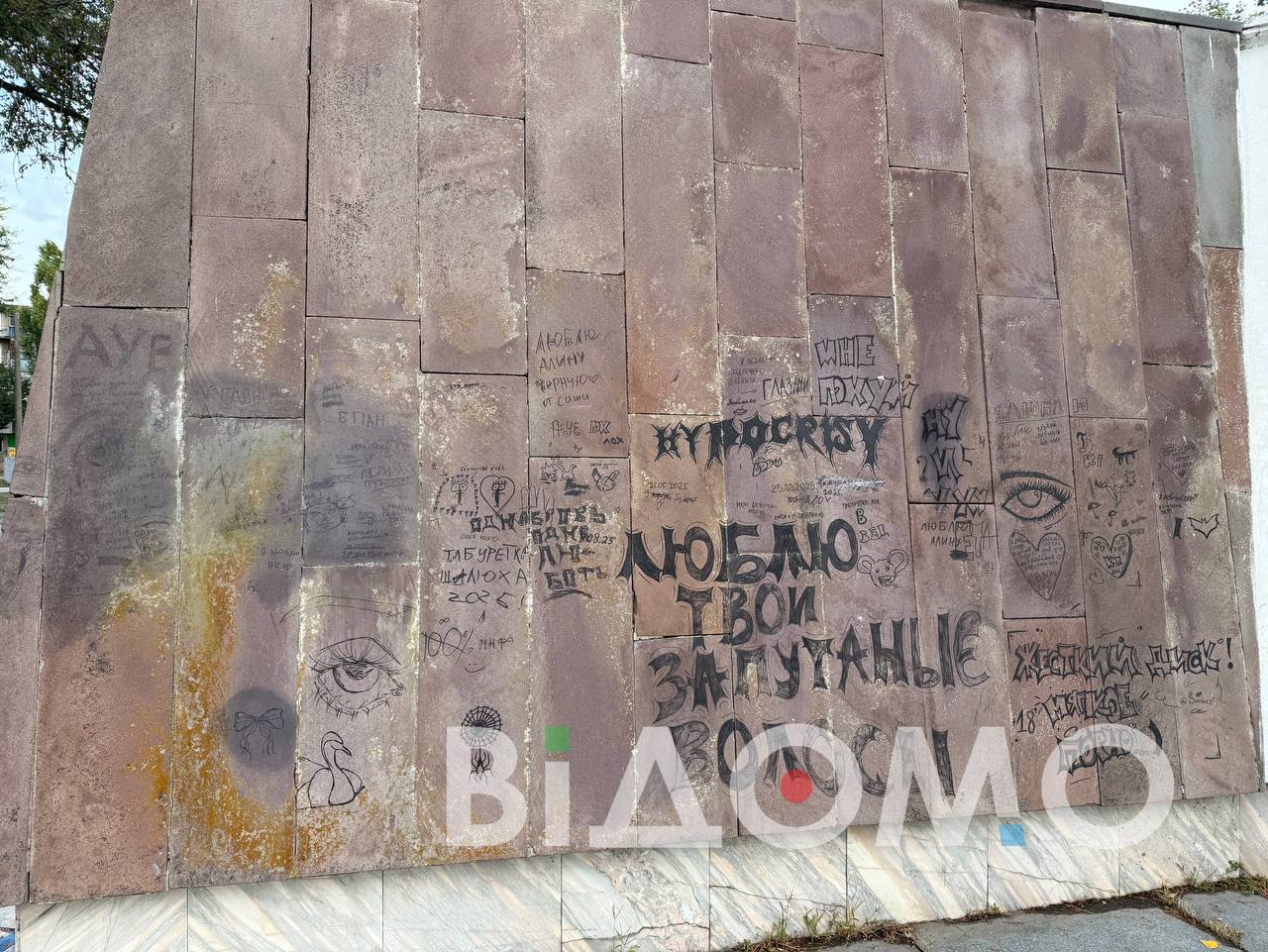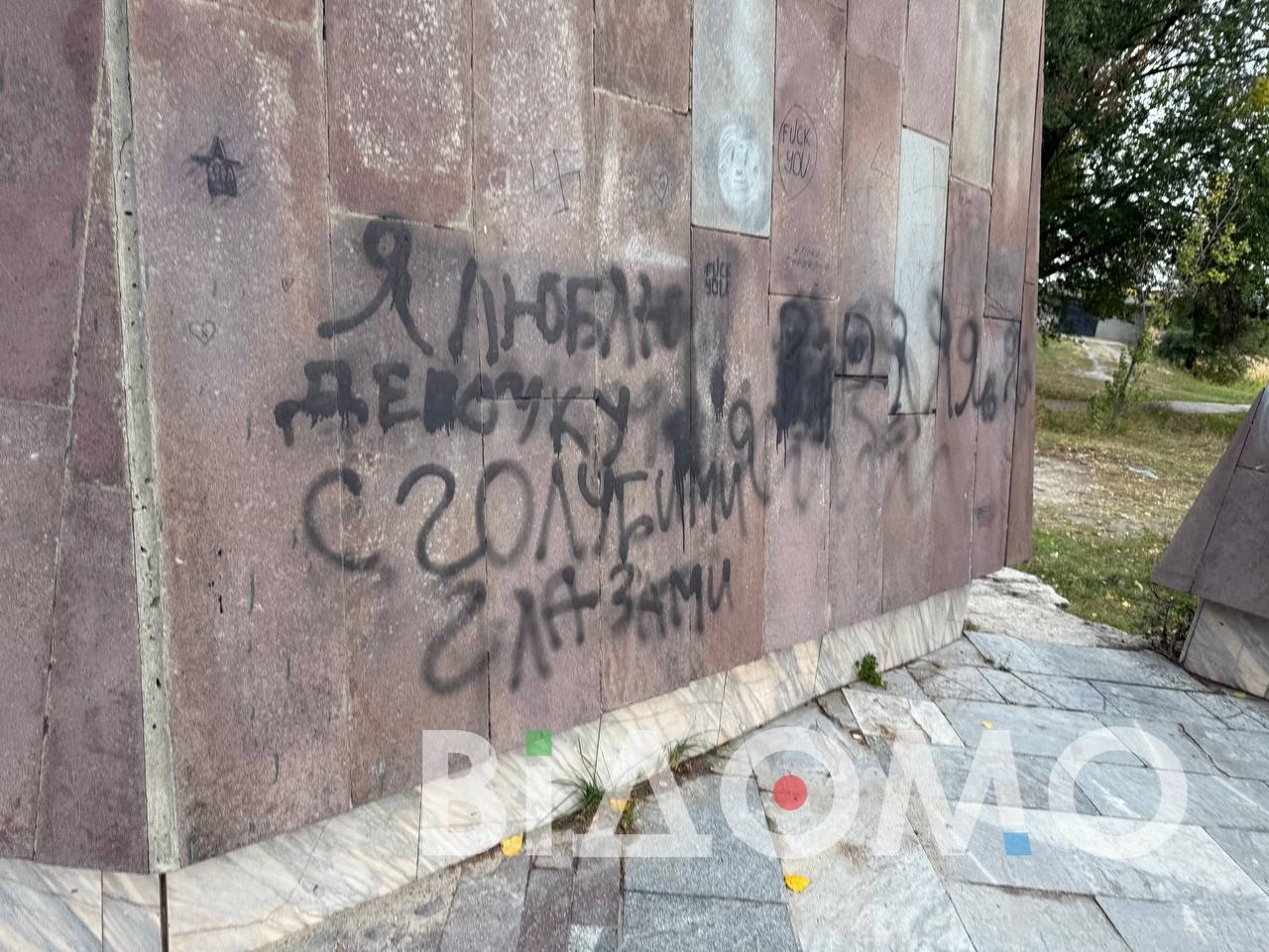 Весь обеліск обписаний образливими написами та розмальований фарбою. Символ боротьби і пам’яті перетворився на полотно для хуліганських витівок. Цей акт вандалізму яскраво демонструє, як частина молоді не усвідомлює важливості історичної спадщини і нехтує пам’яттю тих, хто віддав життя за свободу.