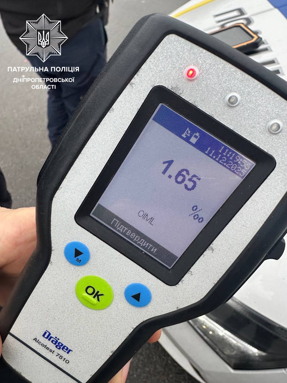 Перший випадок стався в Амур-Нижньодніпровському районі обласного центру, коли патрульні зупинили порушника ПДР на Renault. Під час спілкування з водієм інспектори помітили у нього ознаки алкогольного сп'яніння. Підозру підтвердив прилад "Драгер", який показав у крові керманича 2,89 проміле алкоголю.